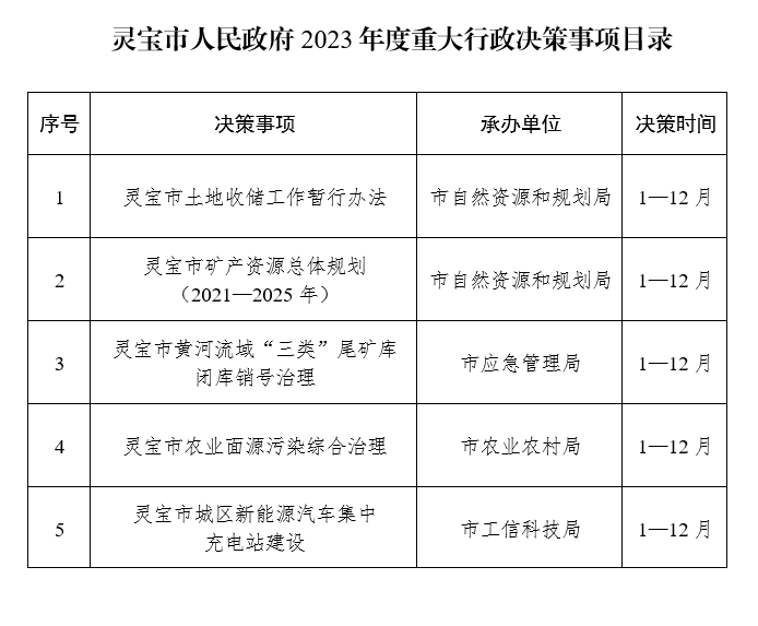 灵宝市人民政府办公室关于印发灵宝市人民政府2023年度重大行政决策事项目录的通知