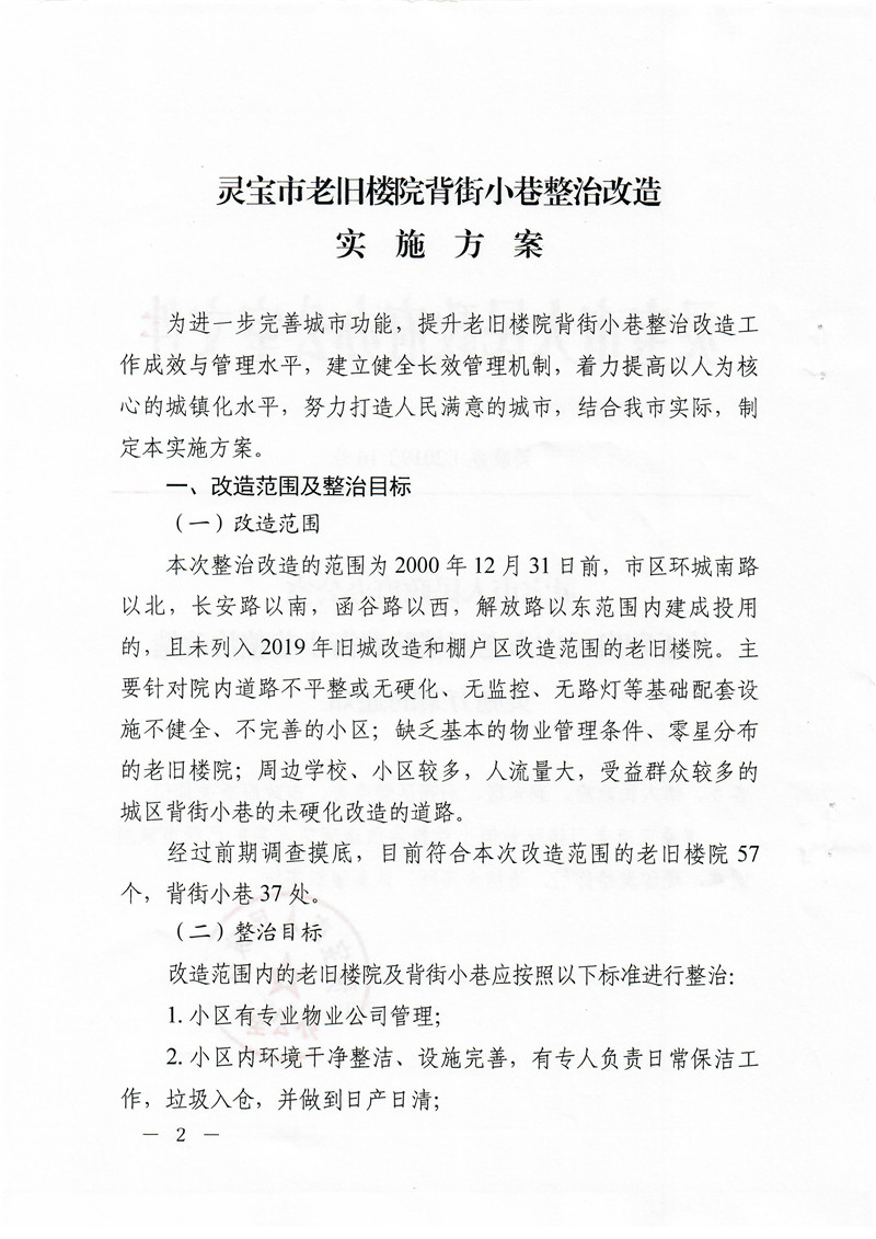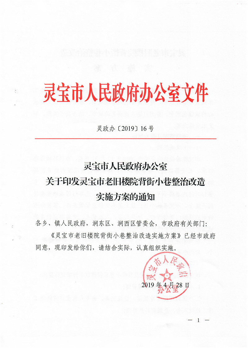 灵宝市人民政府关于印发灵宝市老旧楼院背街小巷整治改造实施方案的通知