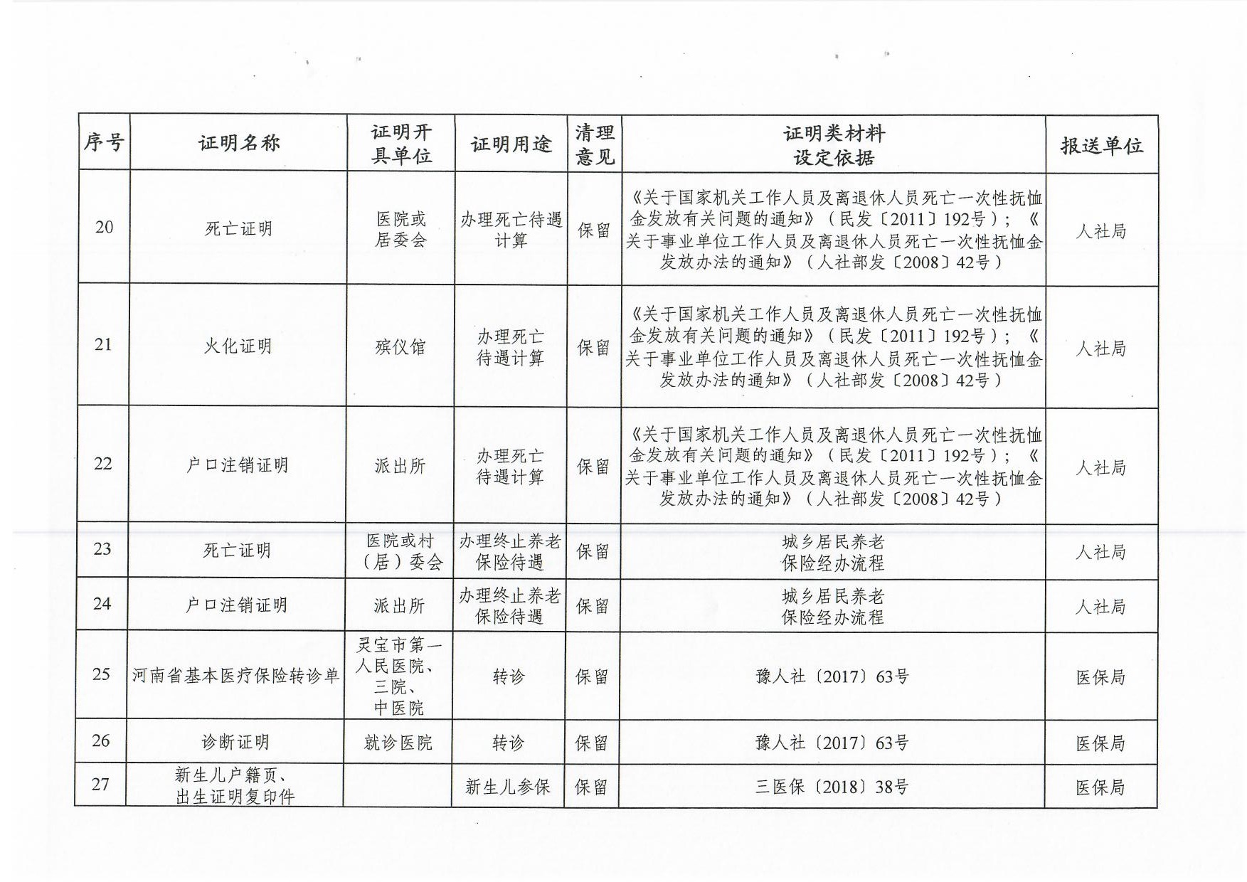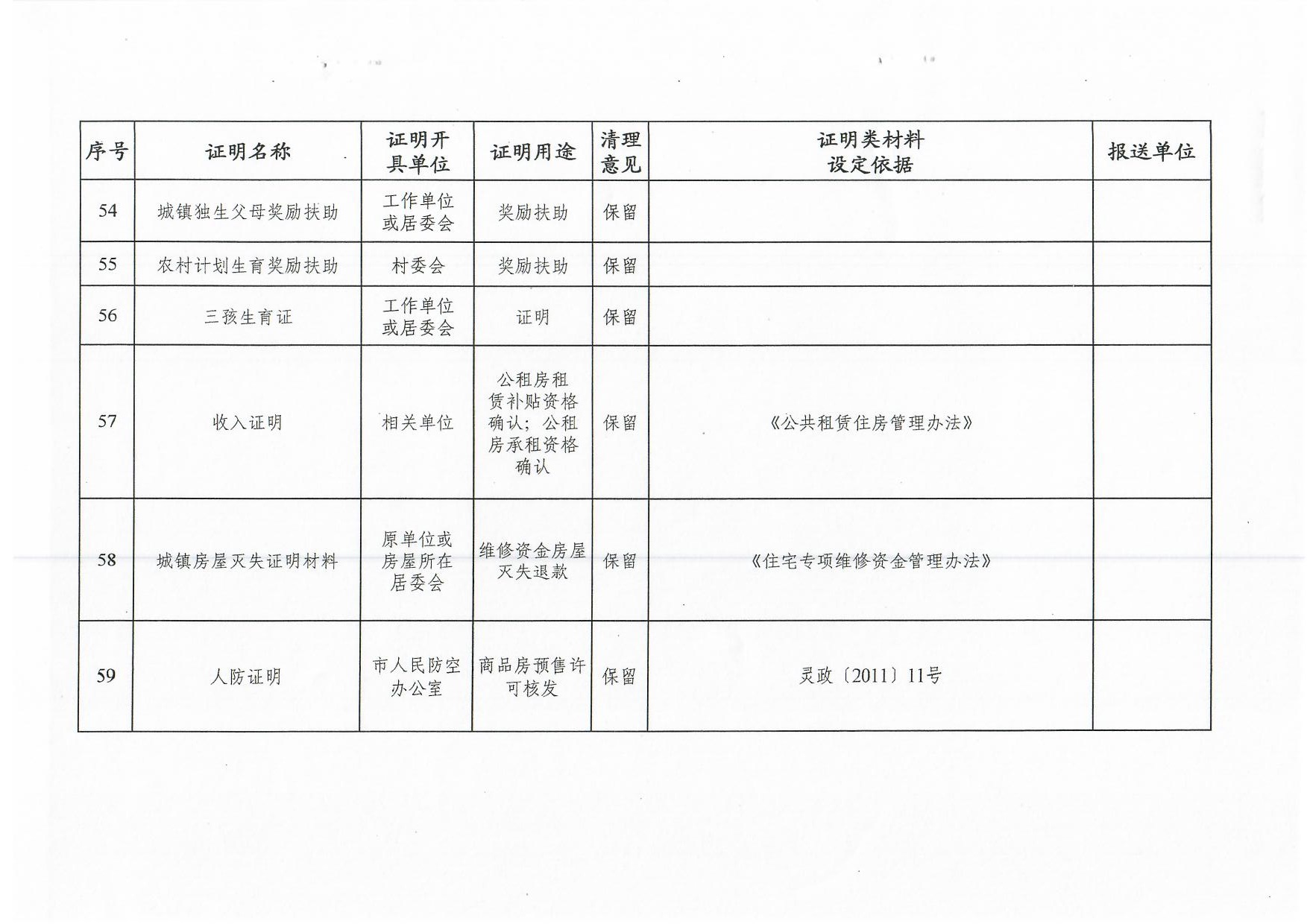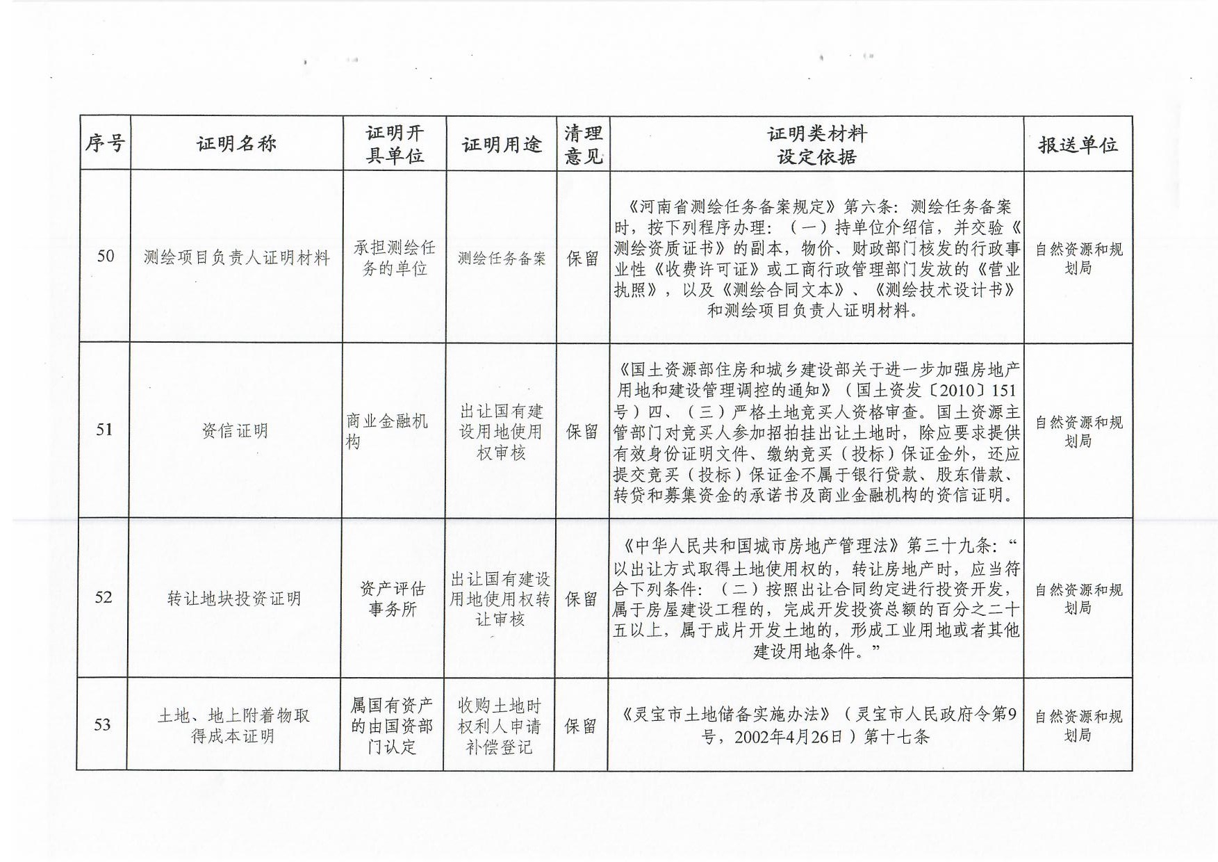 灵宝市人民政府办公室关于公布全面清理规范证明事项结果的通知