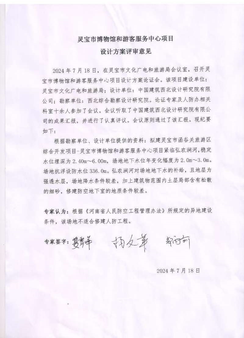附:《灵宝市函谷关旅游区综合开发项目-灵宝市博物馆和旅游服务中心项目设计方案评审意见》