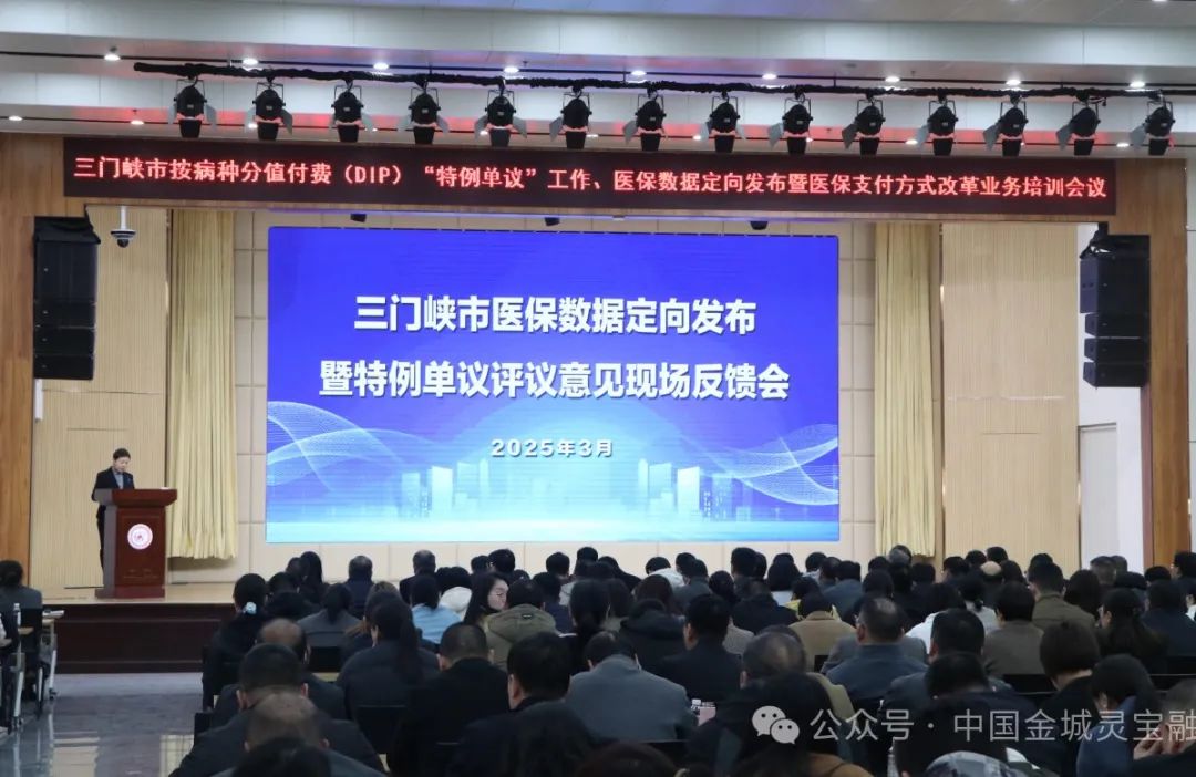 3月29日,三门峡市医保数据定向发布暨特例单议评议意见现场反馈会在灵宝市召开,河南省医疗保障局医药服务管理处二级调研员杨东科到会指导,三门峡市政府副秘书长贾成伟,三门峡市卫健委党组书记、主任、二级巡视员张建军,三门峡市医疗保障局党组书记、局长、二级巡视员杨跃民,灵宝市市委副书记、市长宋速快出席会议并讲话,灵宝市副市长李学斌出席会议。会议由三门峡市医疗保障局二级调研员张建兰主持,省内外评议专家,三门峡市、各县市区相关部门、医疗机构负责人及医保系统代表共500余人参会。会议宣读了特例单议评议结果,并对三门峡医保数据进行了定向发布。