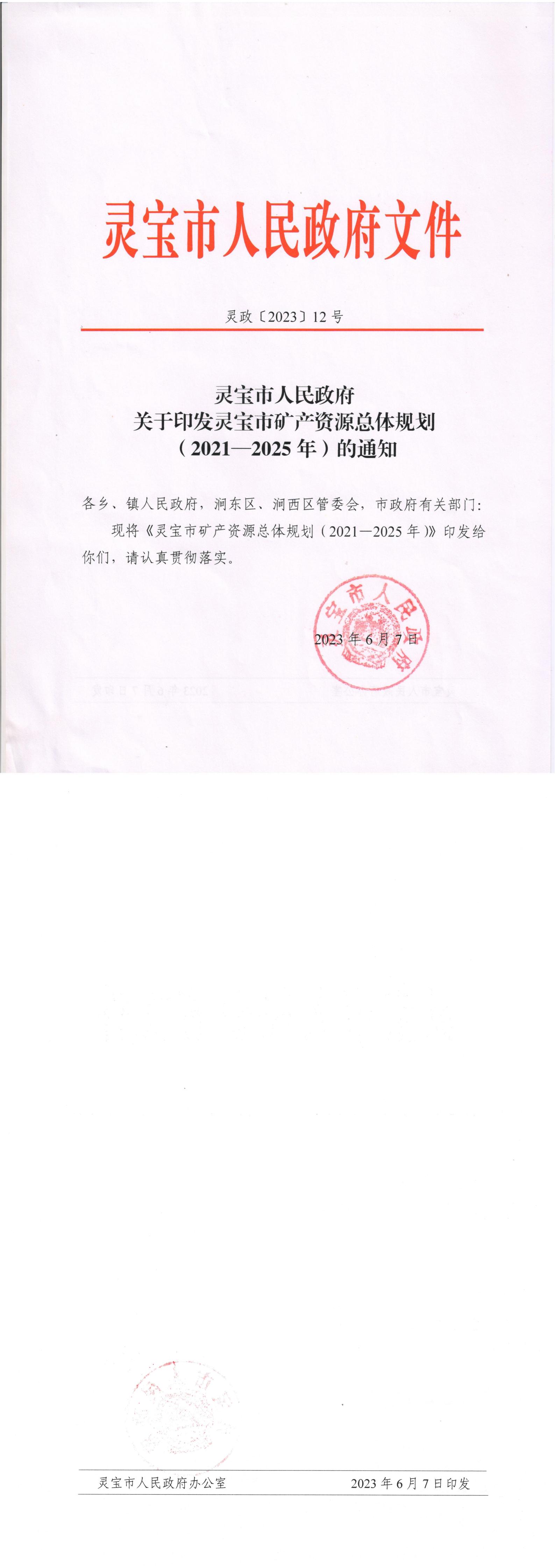 灵宝市人民政府关于印发灵宝市矿产资源总体规划(2021—2025年)的通知