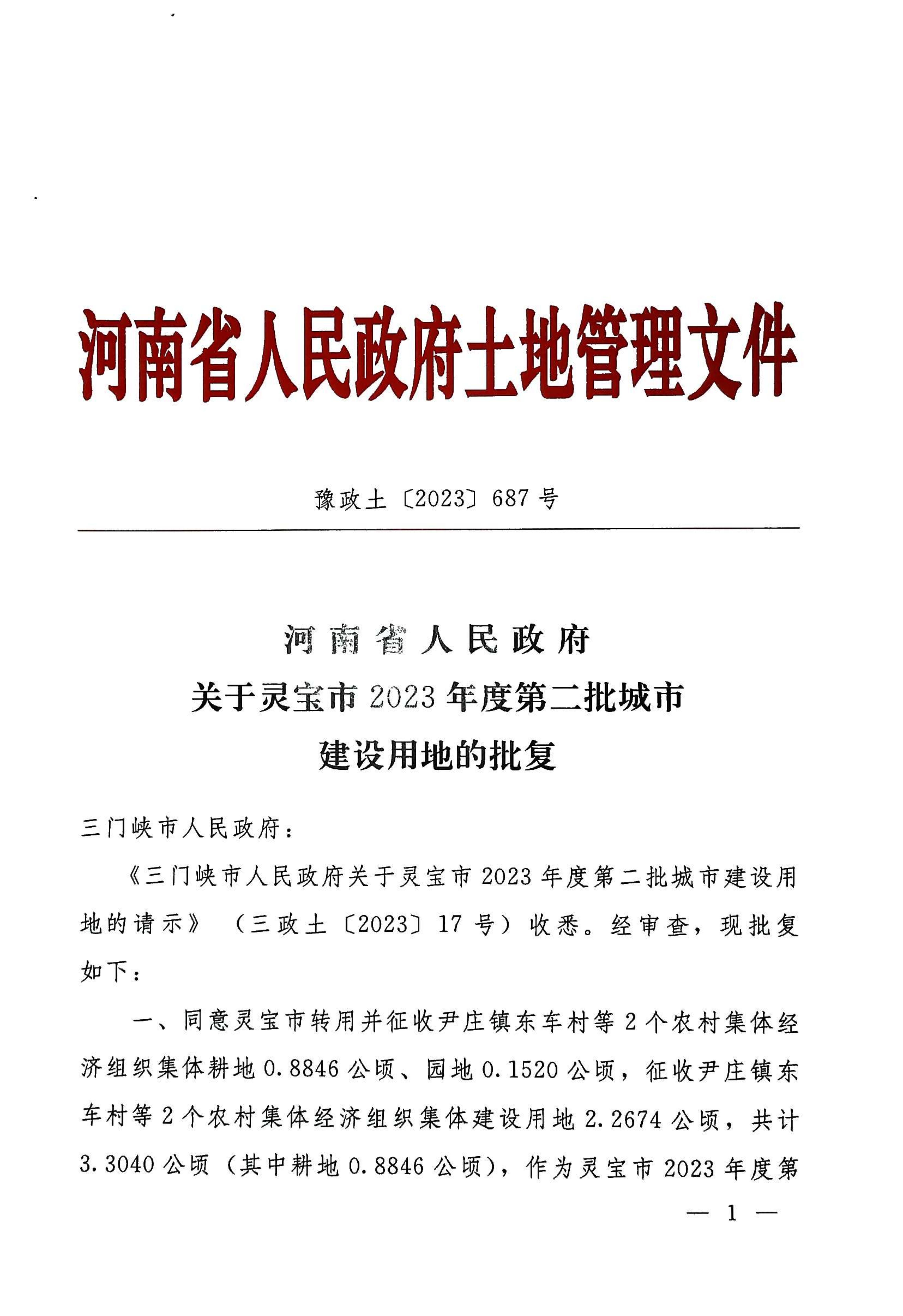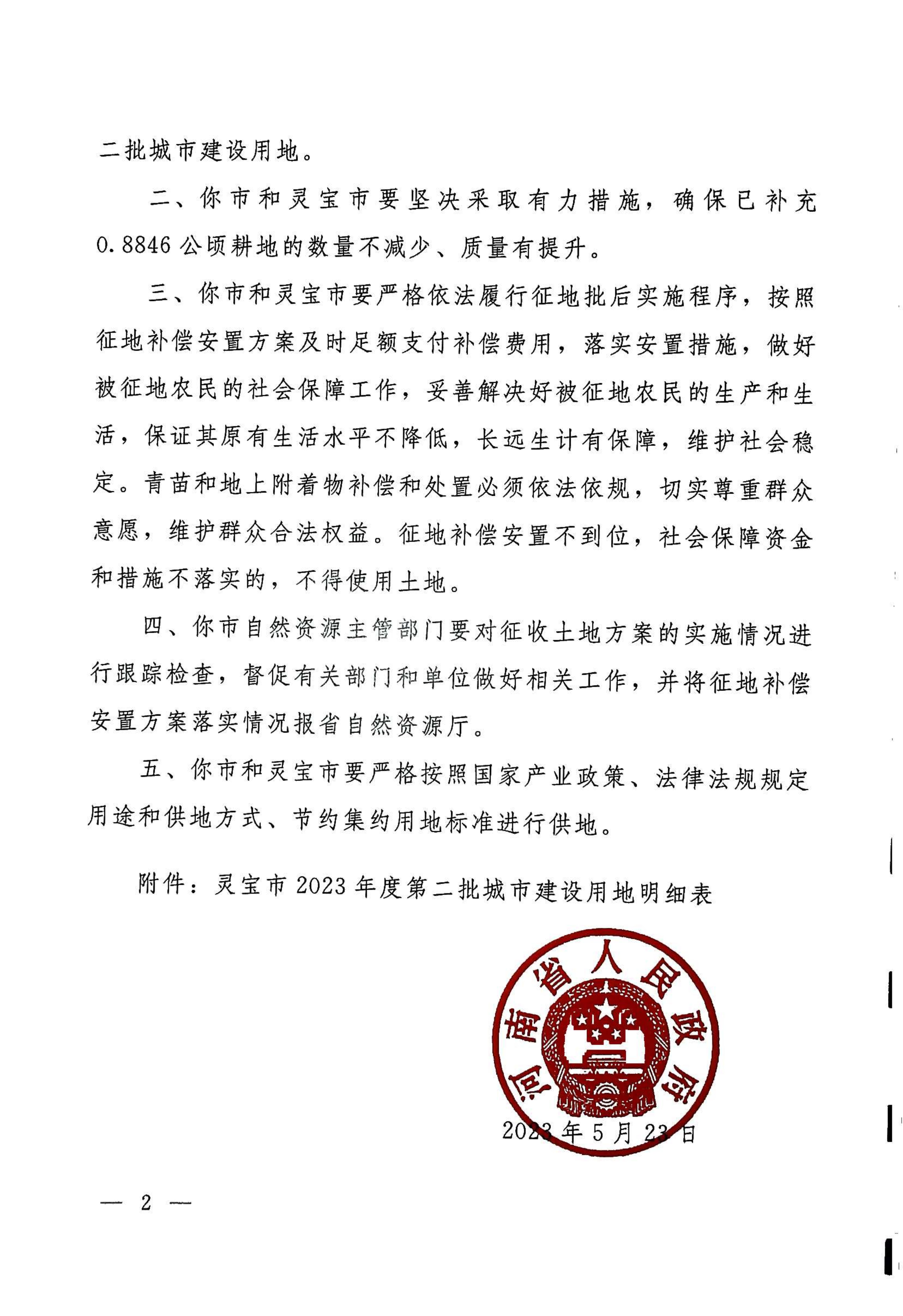 河南省人民政府关于灵宝市2023年度第二批城市建设用地的批复