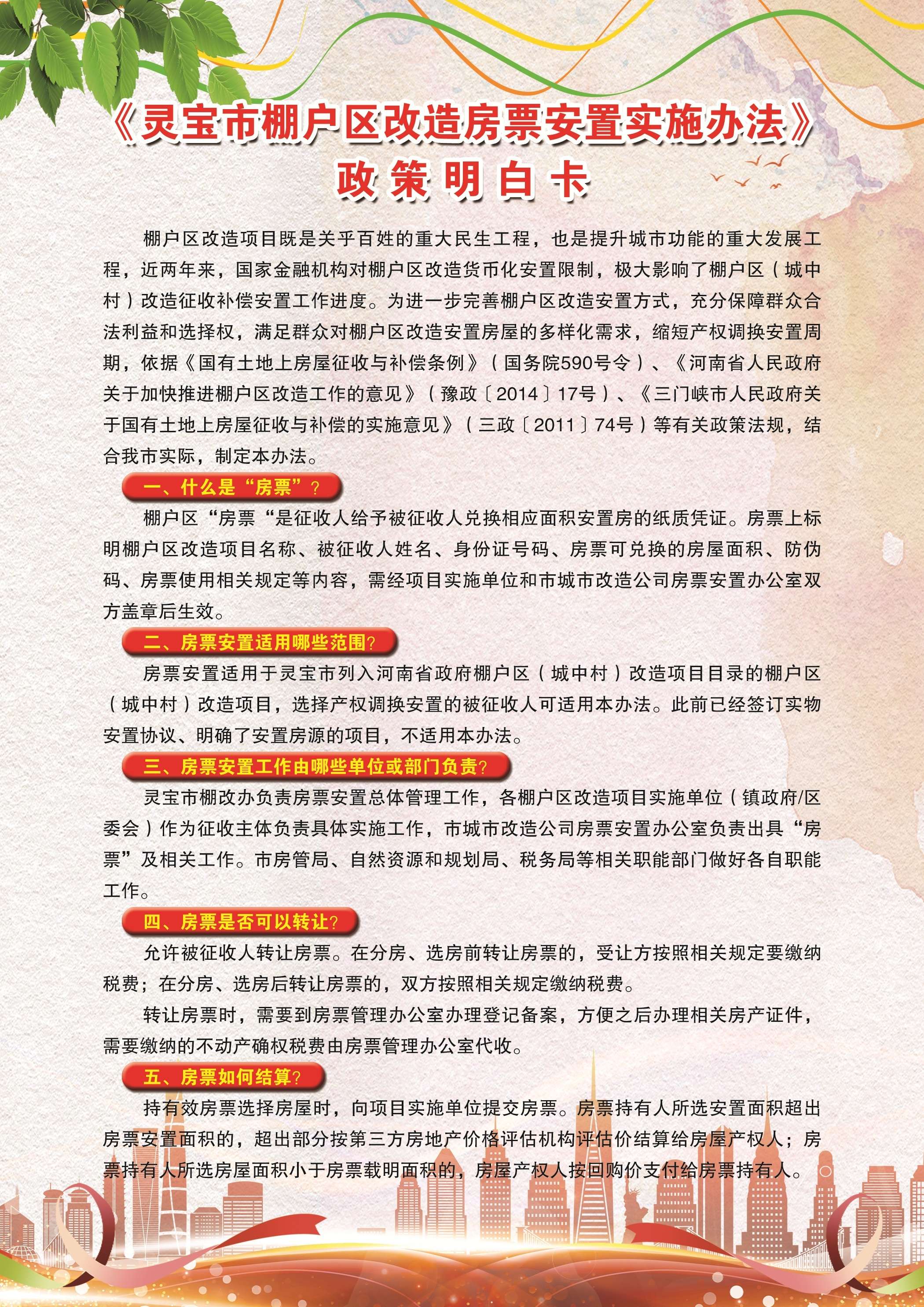 《灵宝市棚户区改造房票安置实施办法》政策明白卡