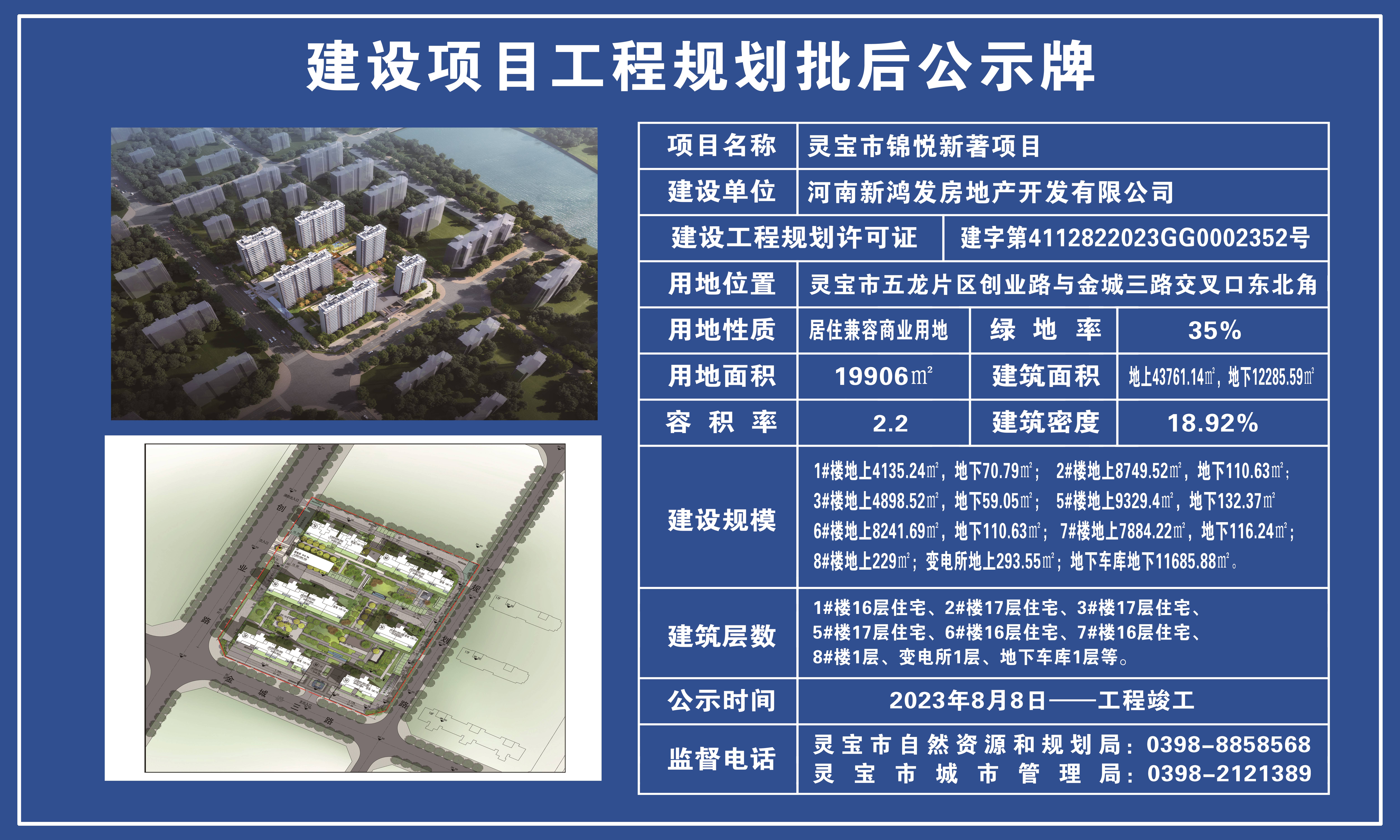 建设项目工程规划批后公示牌(灵宝市锦悦新著项目)