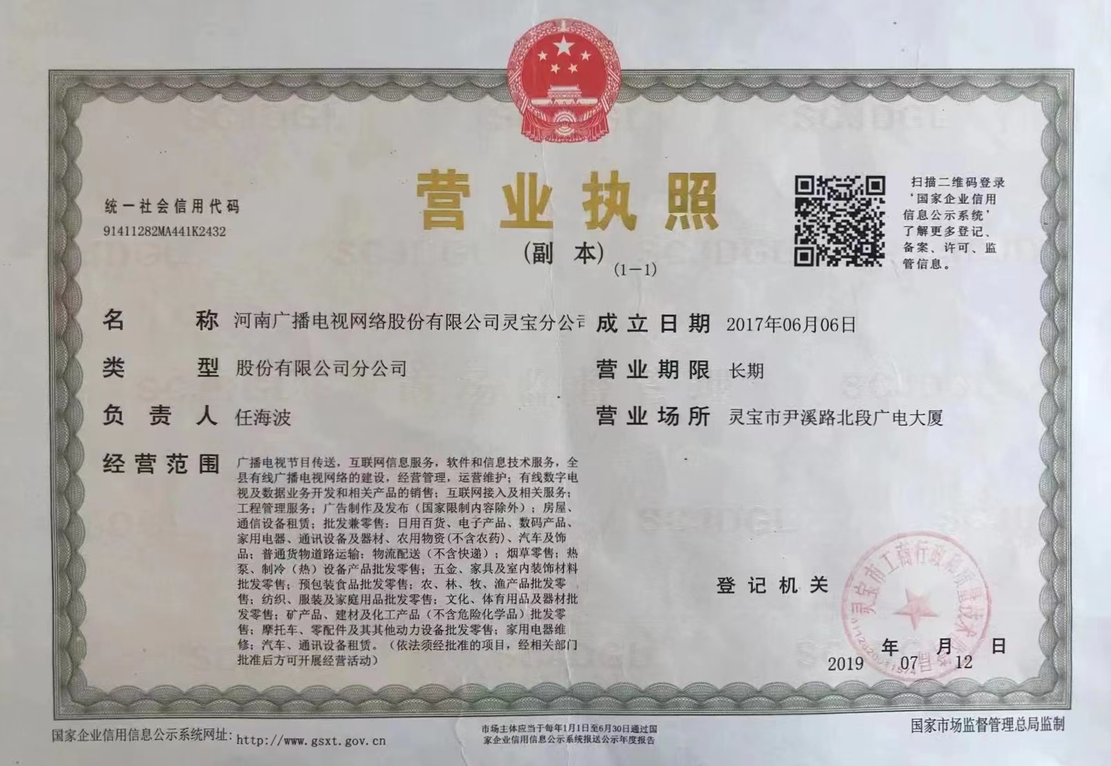 河南广播电视网络股份有限公司灵宝分公司行政许可公示