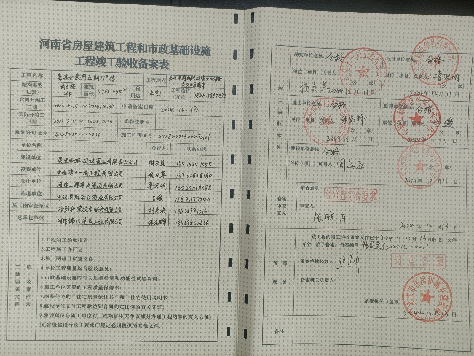 嵩基如意府五期(部分)项目工程竣工验收备案信息