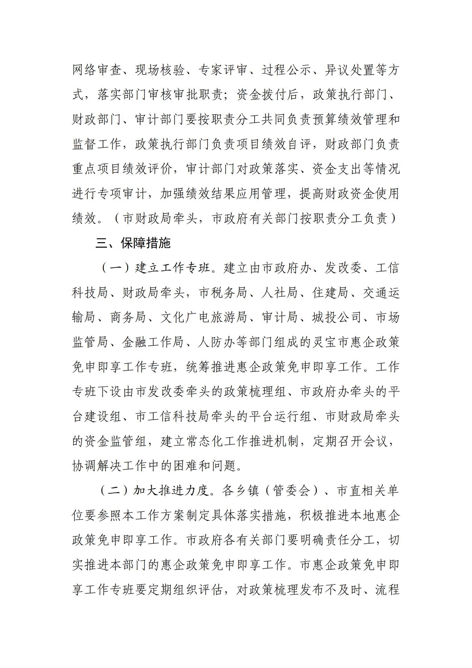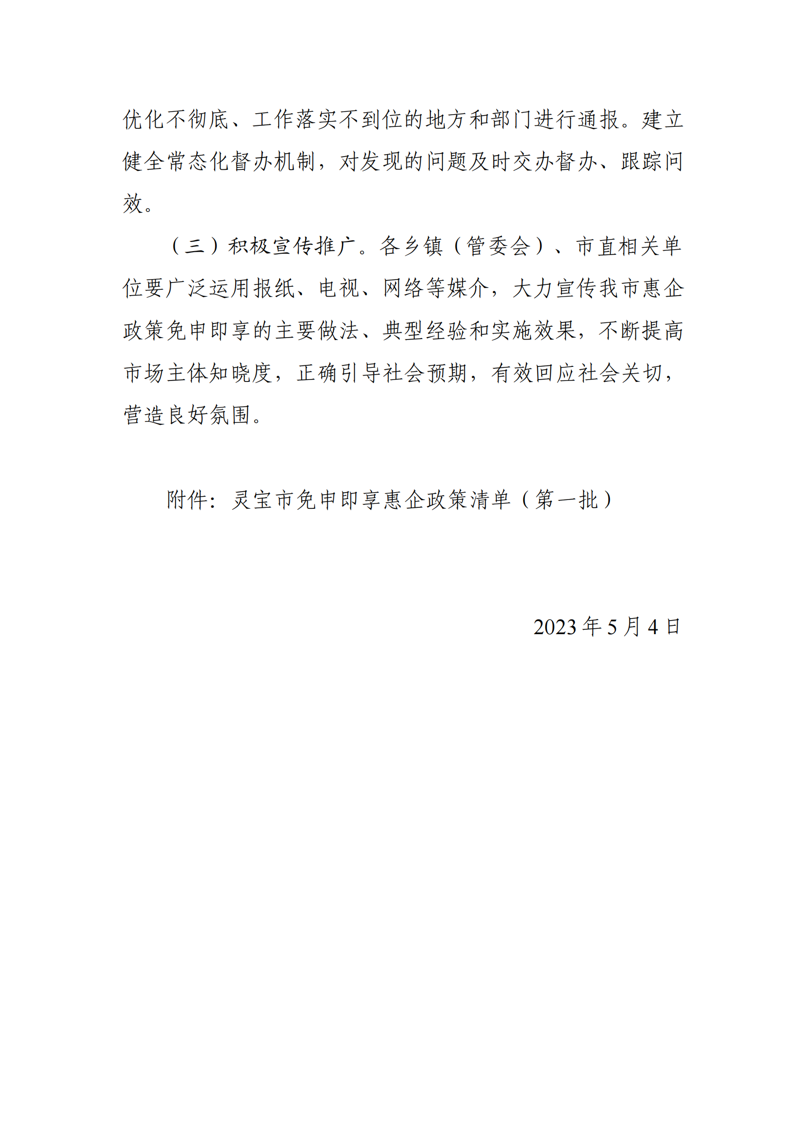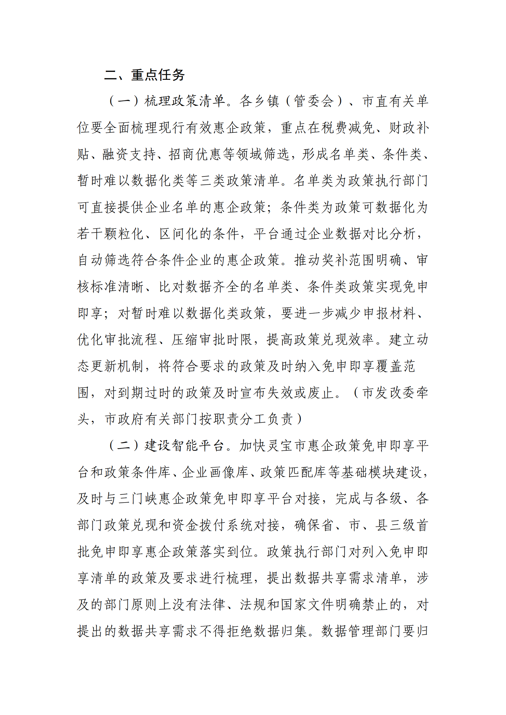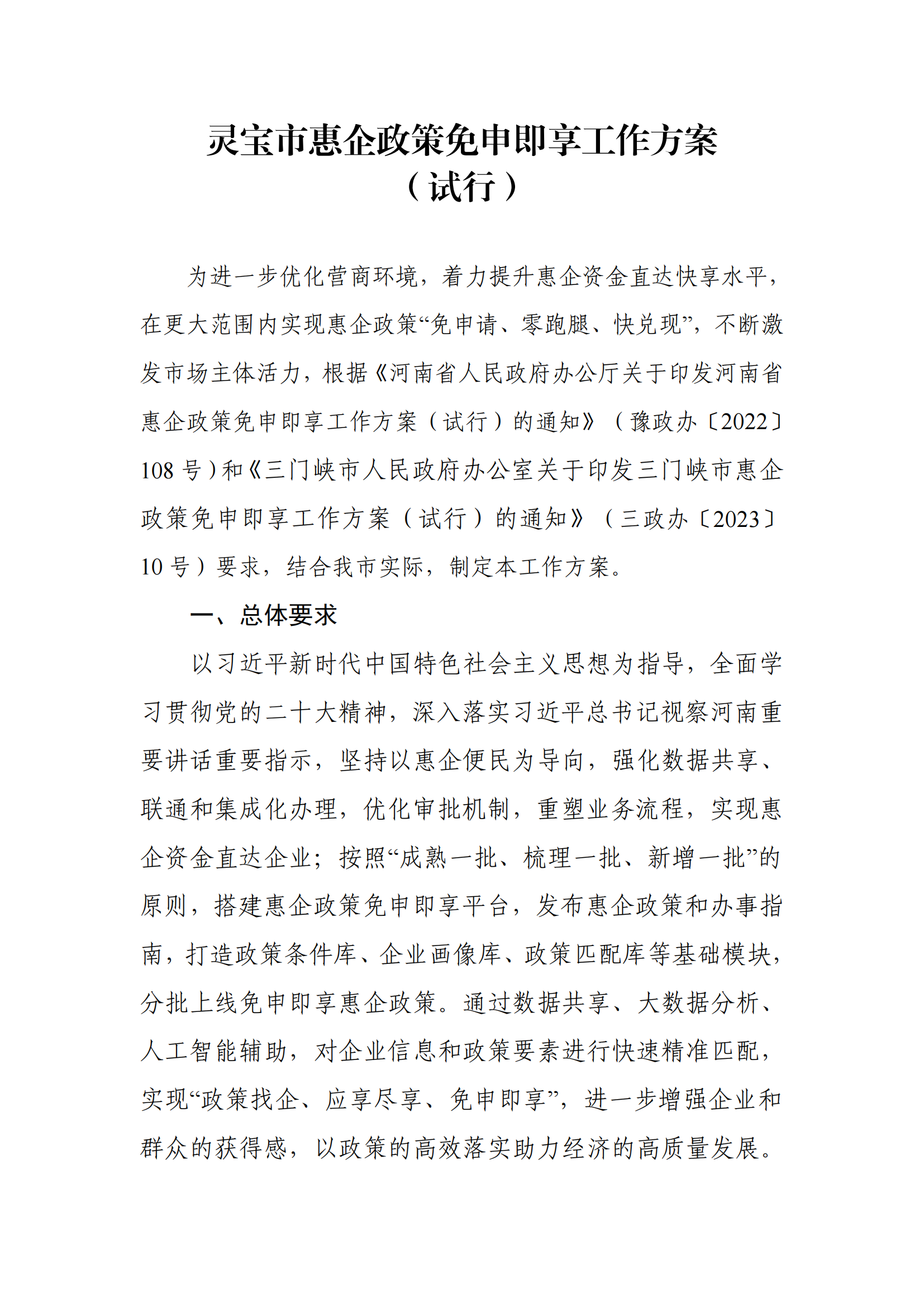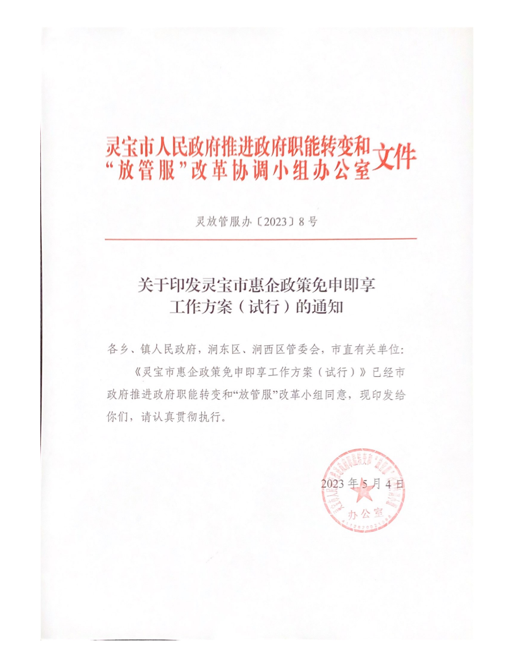 关于印发灵宝市惠企政策免审即享工作方案(试行)的通知