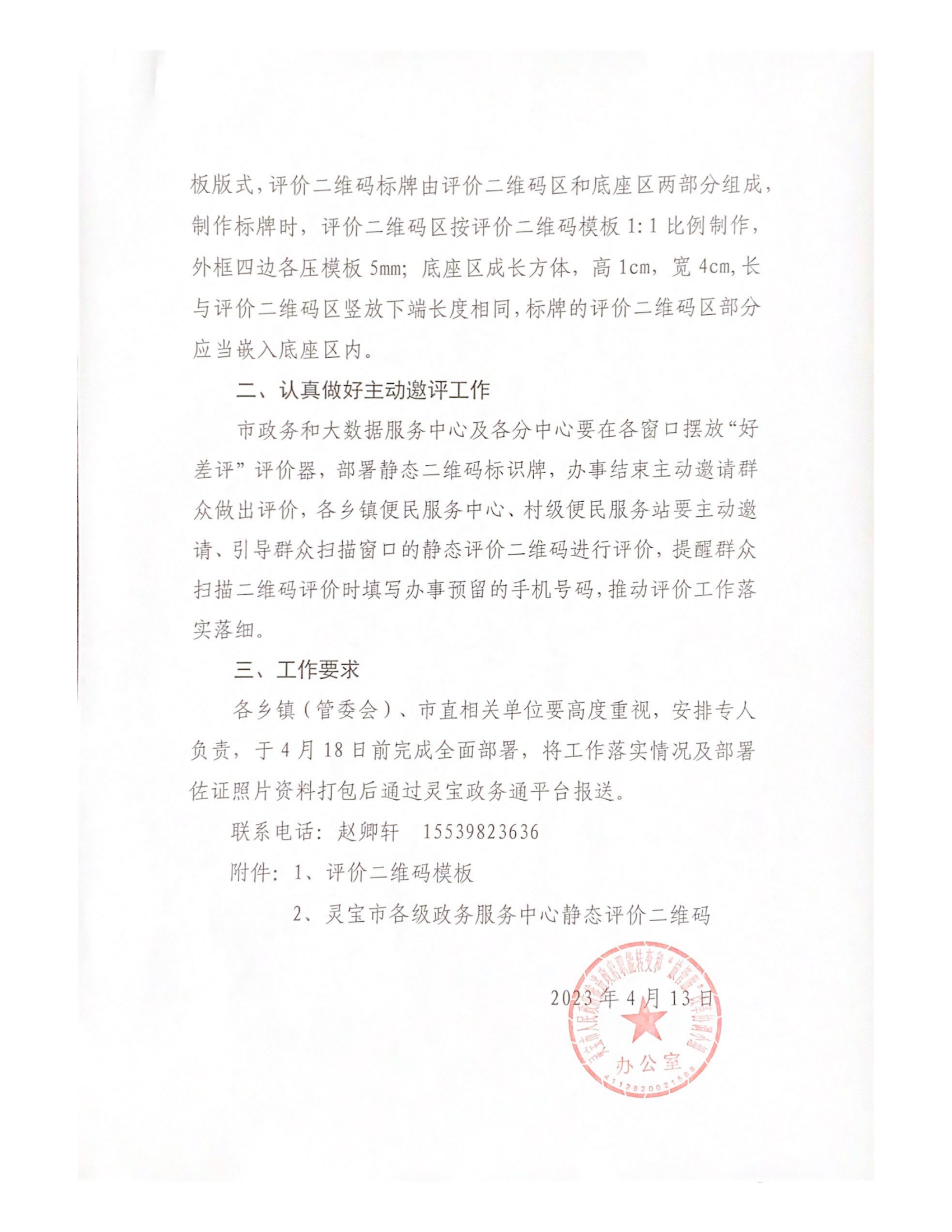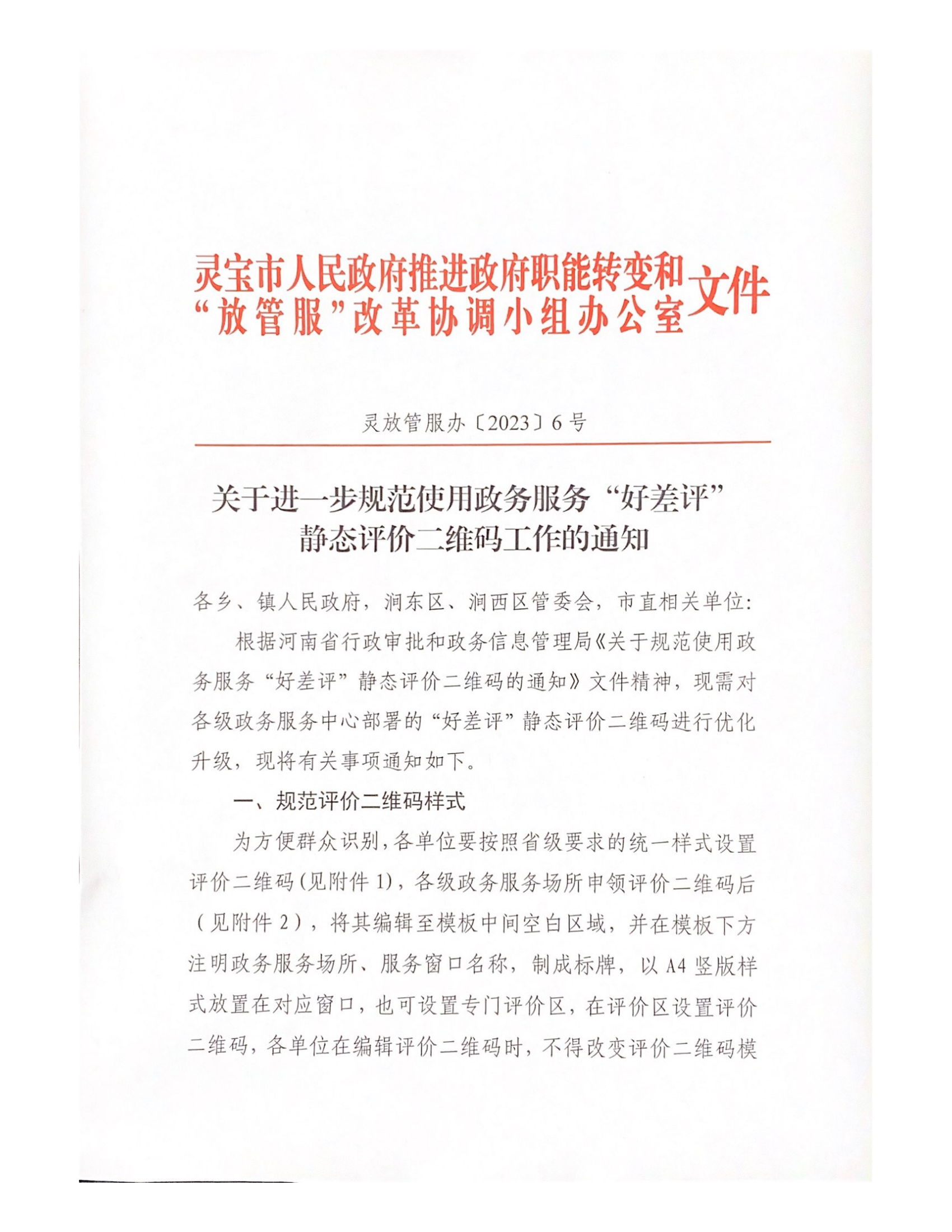 关于进一步规范使用政务服务”好差评“静态评价二维码工作的通知