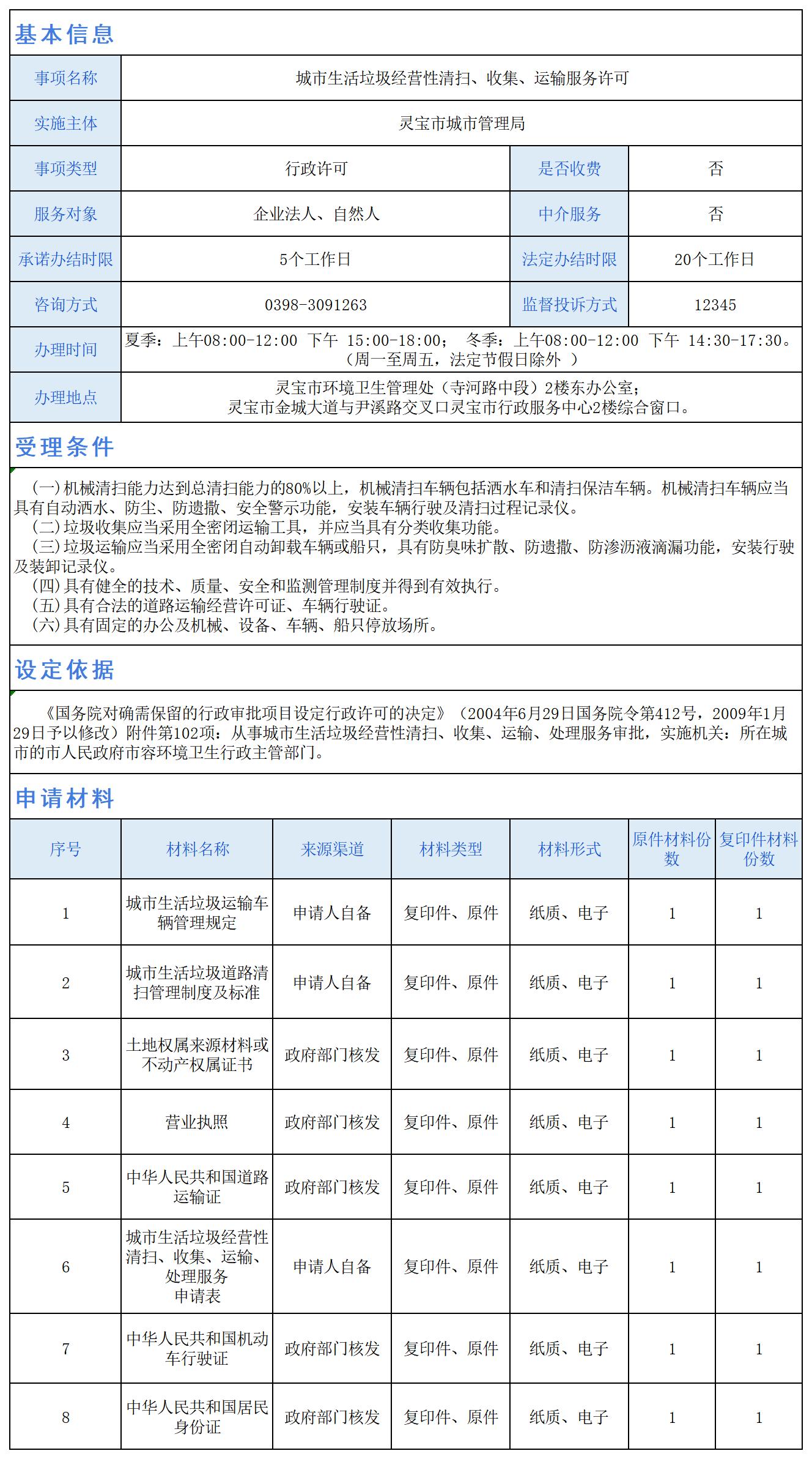 城市生活垃圾经营性清扫、收集、运输服务许可