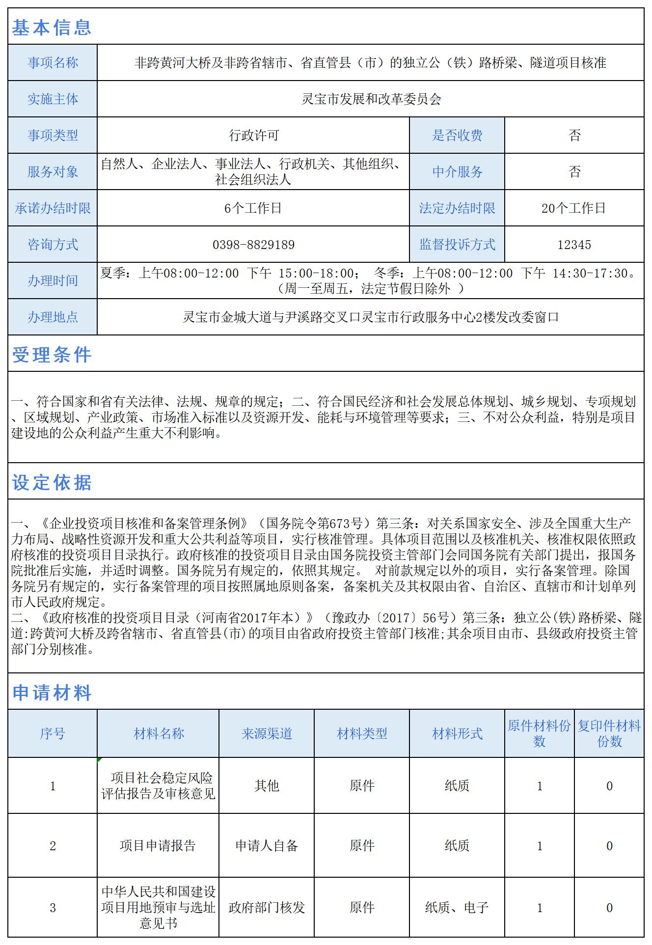 非跨黄河大桥及非跨省辖市、省直管县(市)的独立公(铁)路桥梁、隧道项目核准