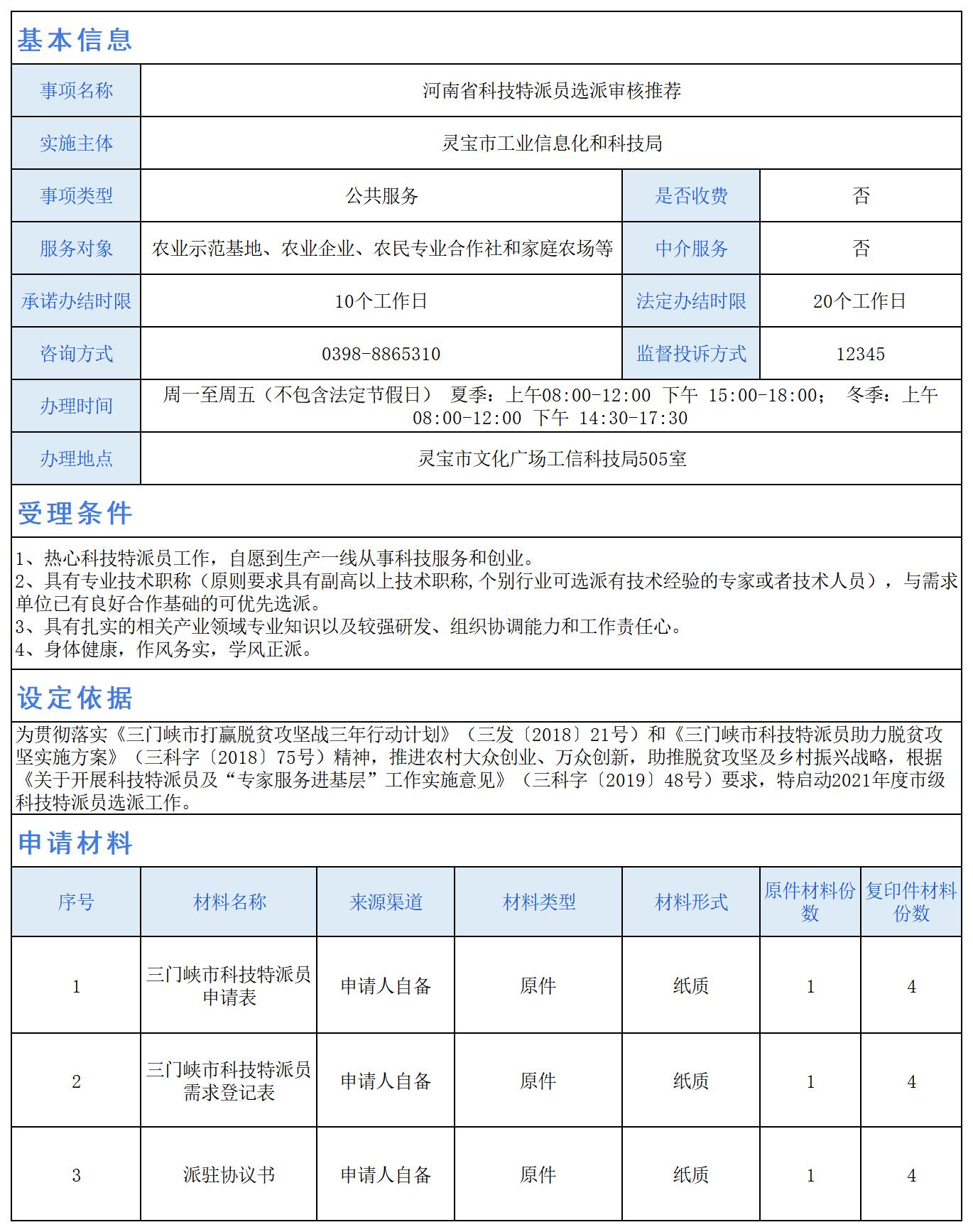 河南省科技特派员选派审核推荐