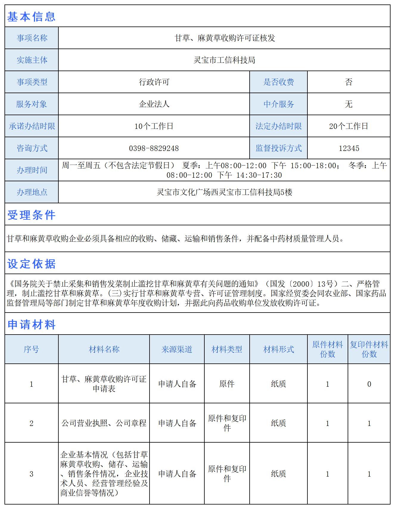 甘草、麻黄草收购许可证核发