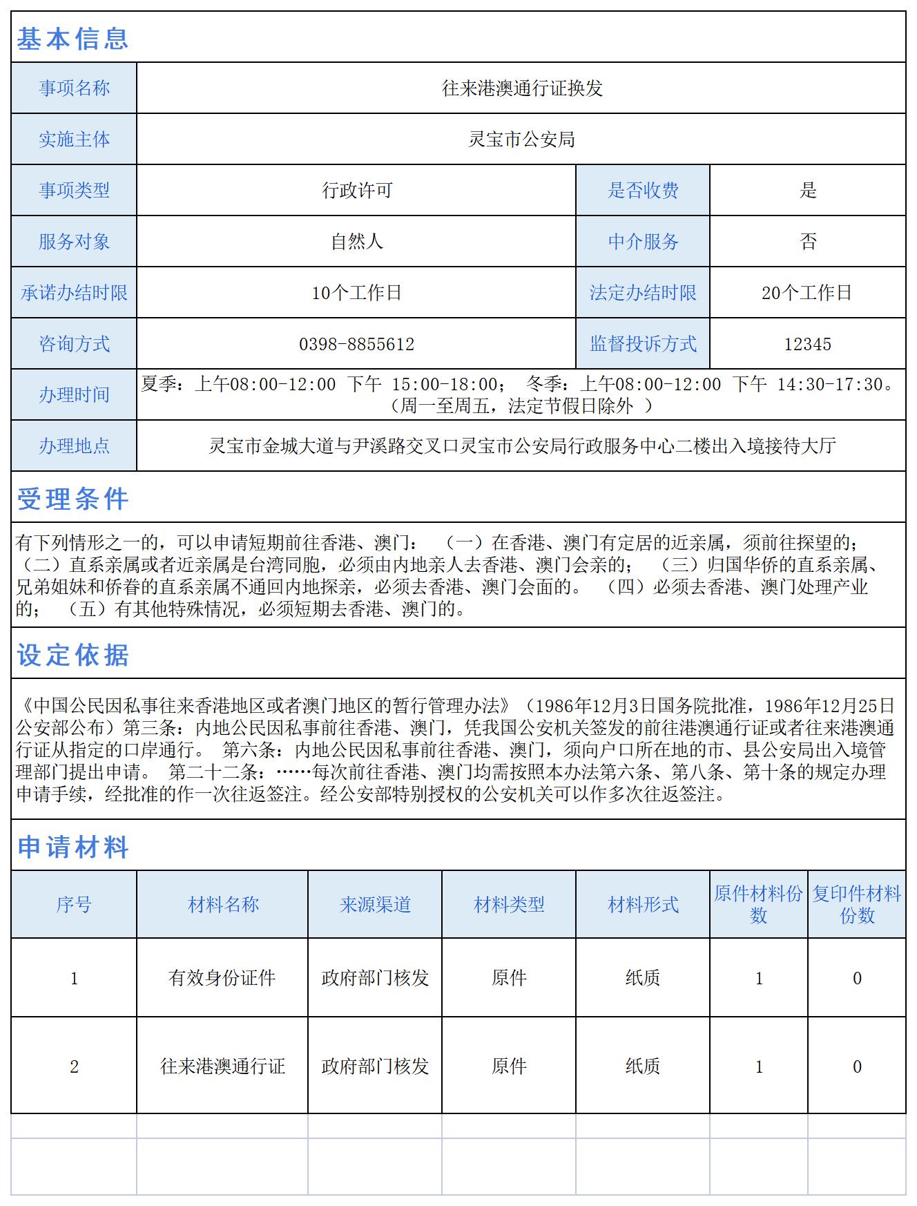 往来港澳通行证换发