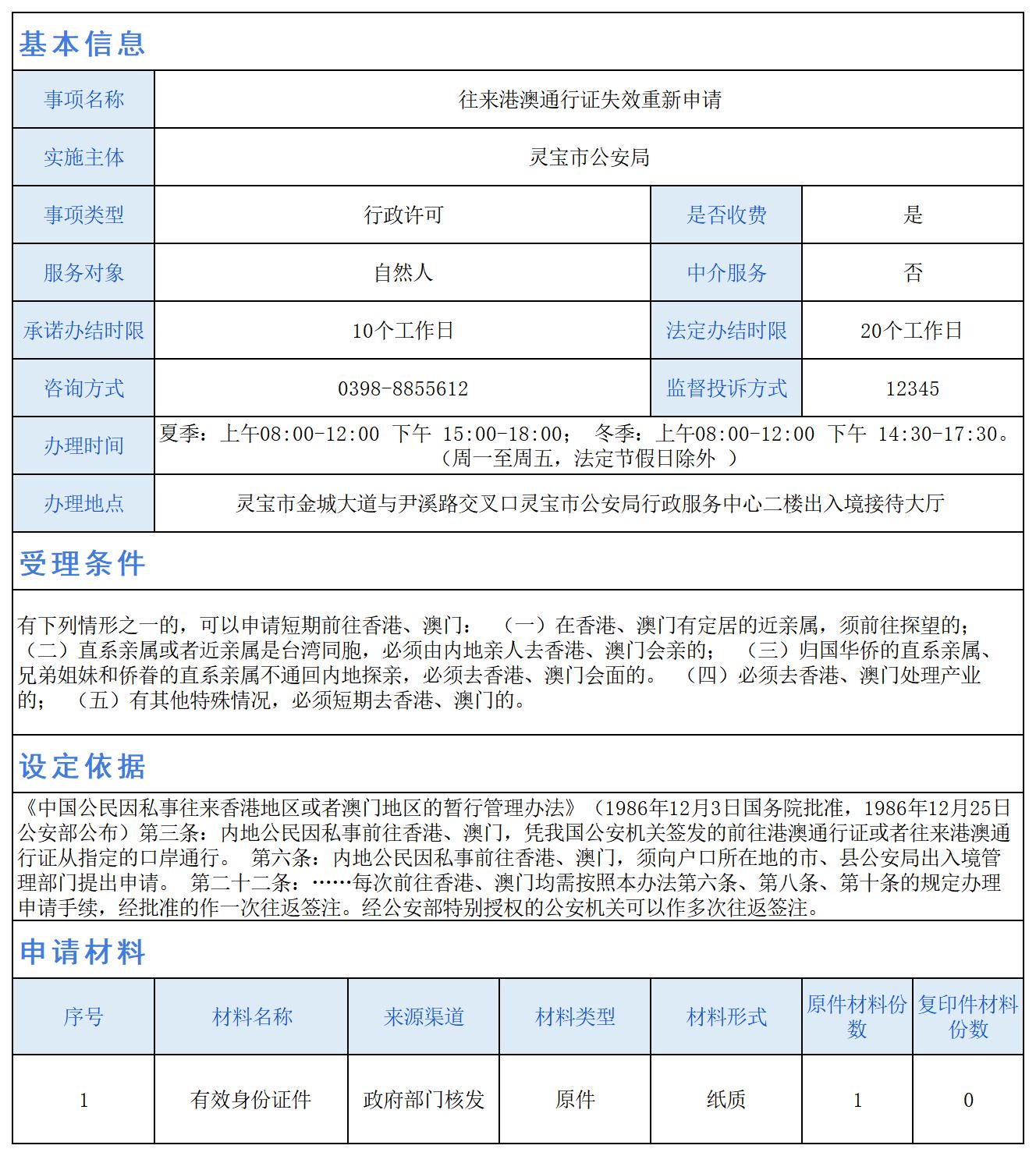 往来港澳通行证失效重新申请