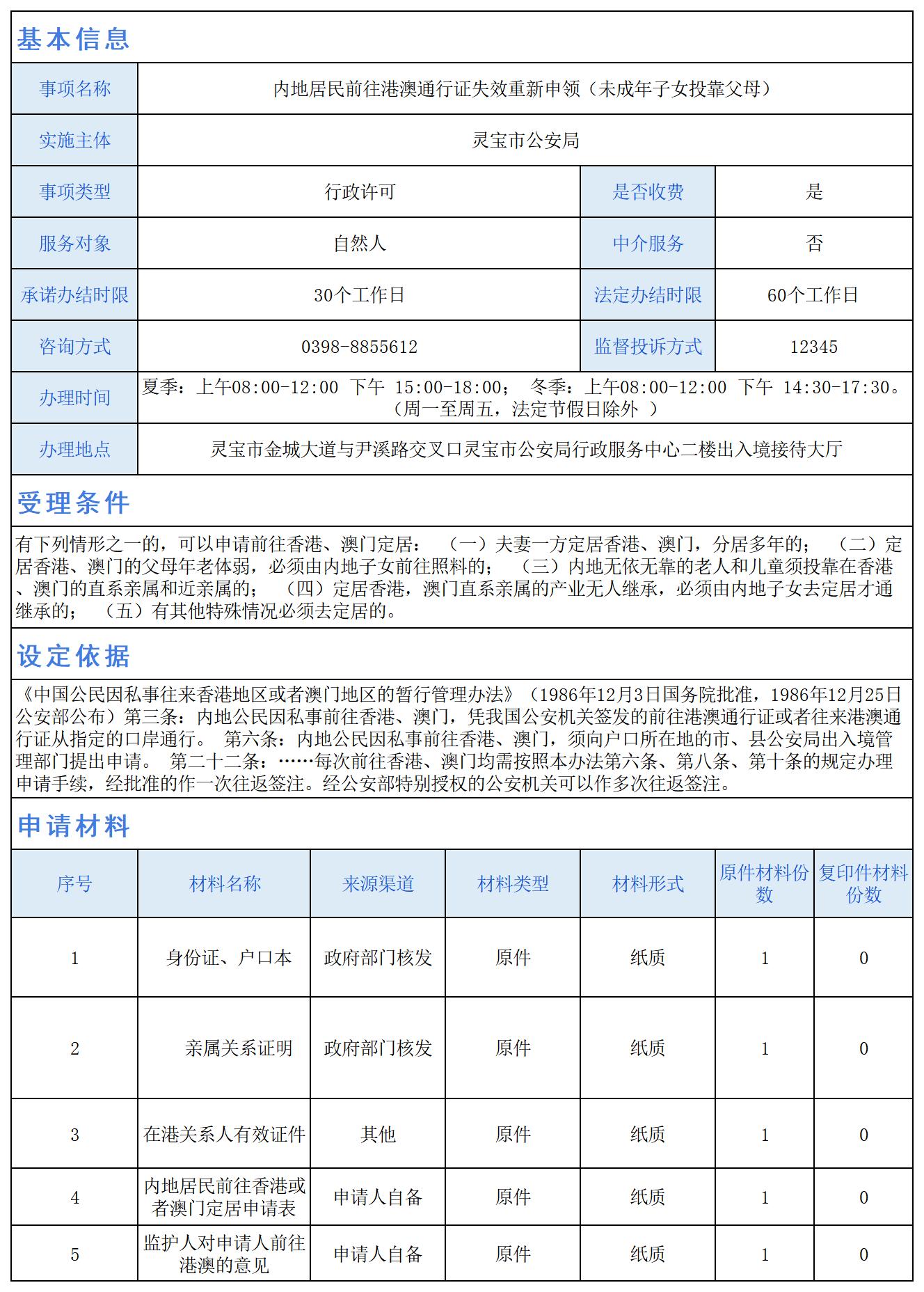 内地居民前往港澳通行证失效重新申领(未成年子女投靠父母)