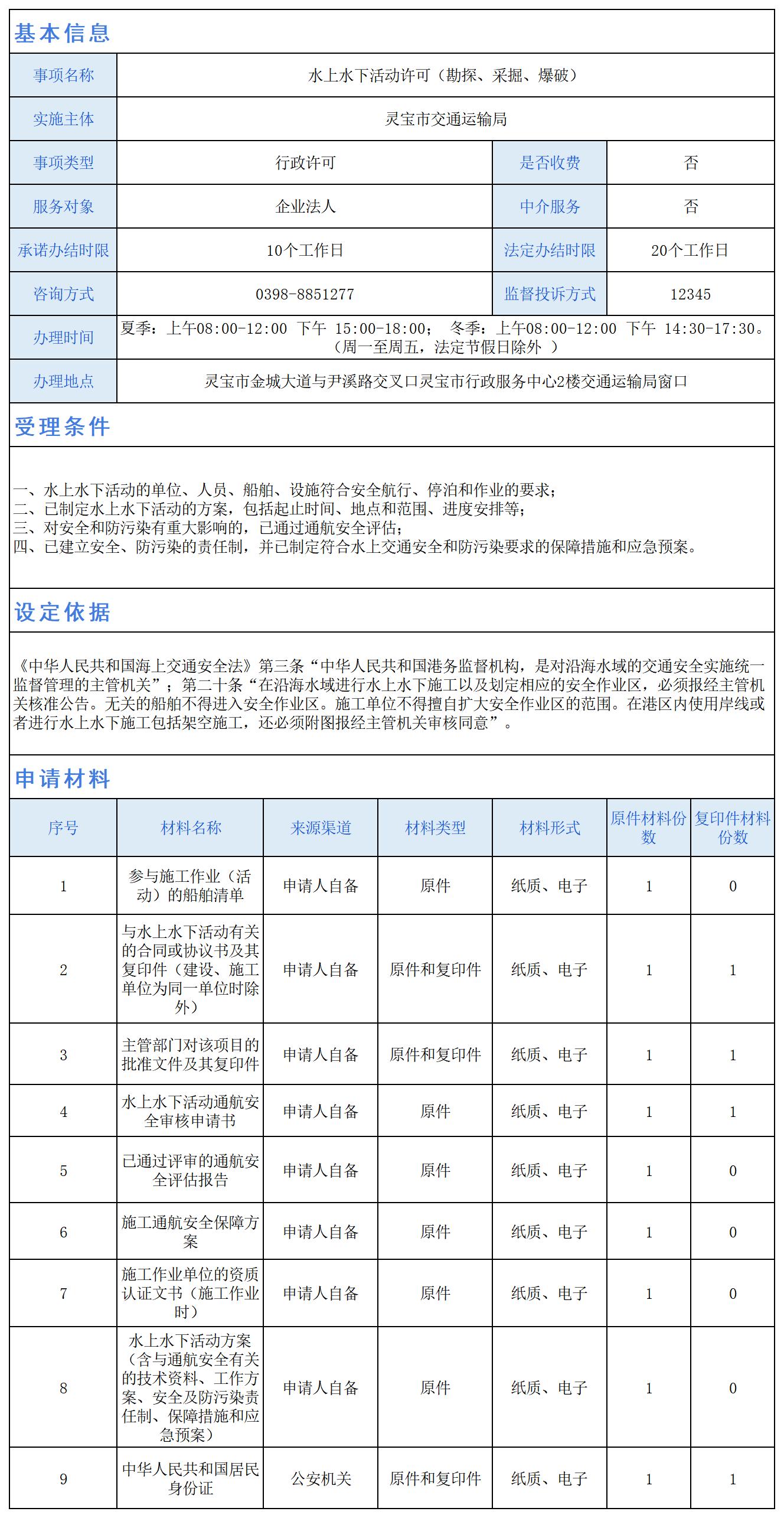 水上水下活动许可(构筑、设置、维修、拆除水上水下构筑物或者设施)