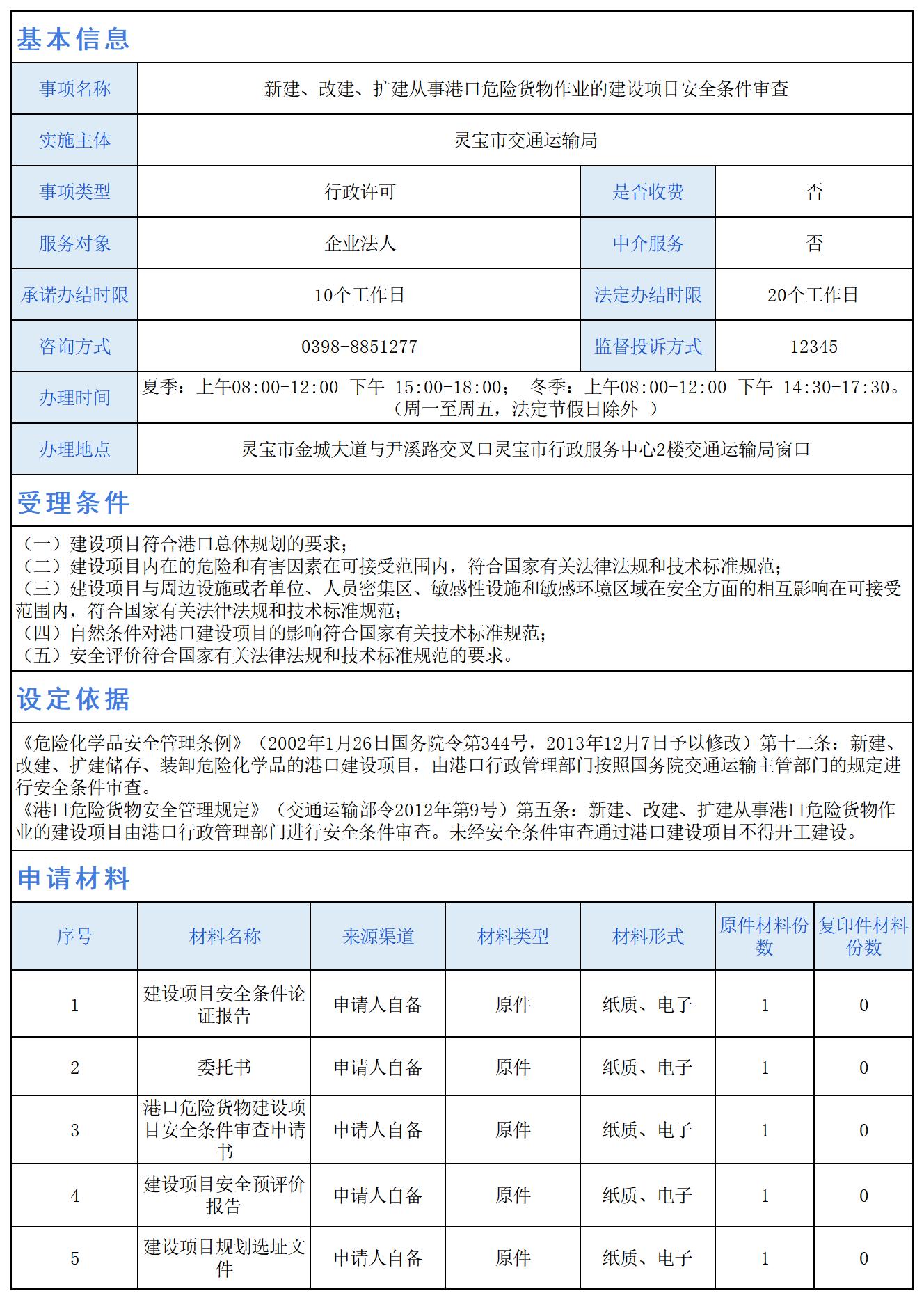 新建、改建、扩建从事港口危险货物作业的建设项目安全条件审查