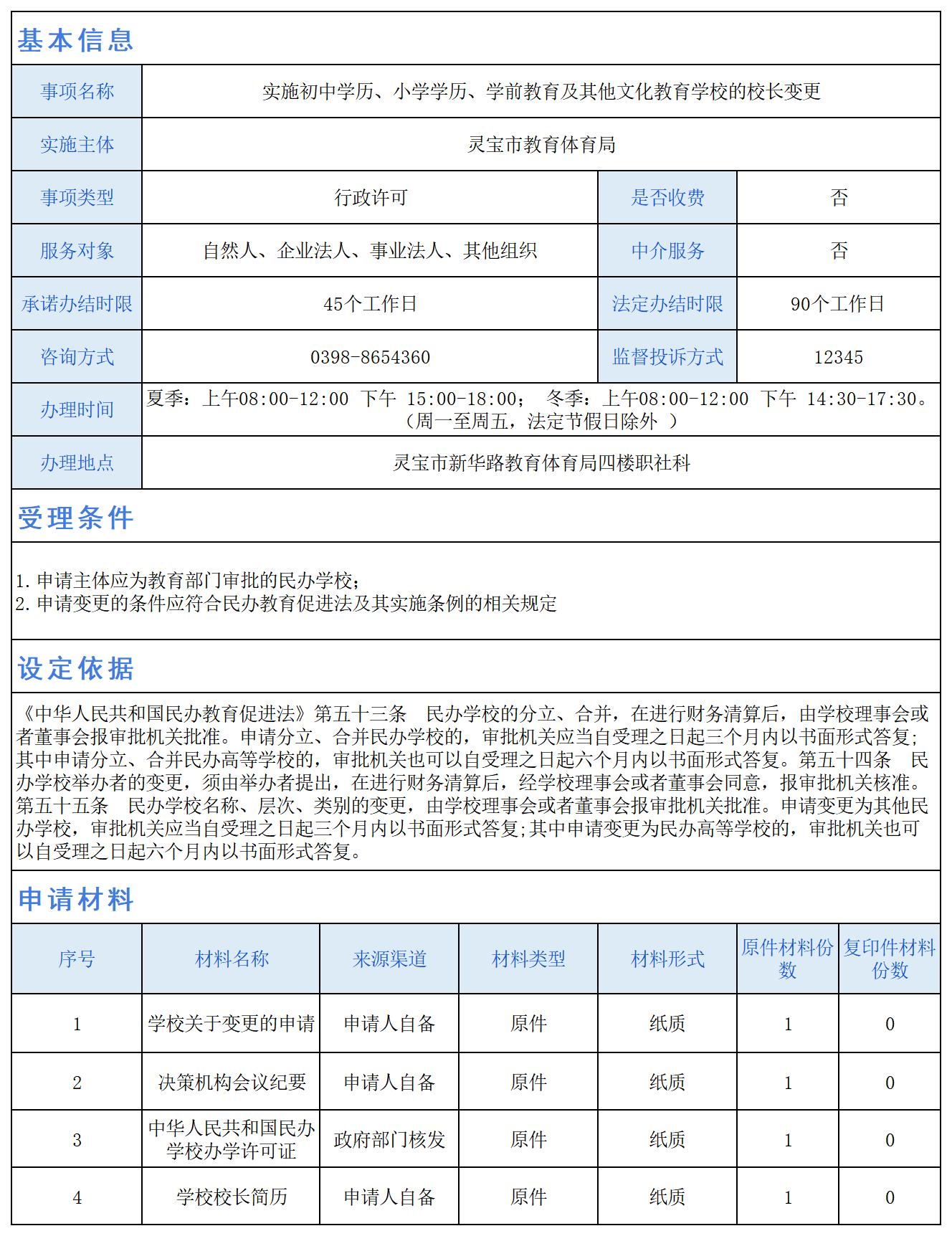 实施初中学历、小学学历、学前教育及其他文化教育学校的校长变更