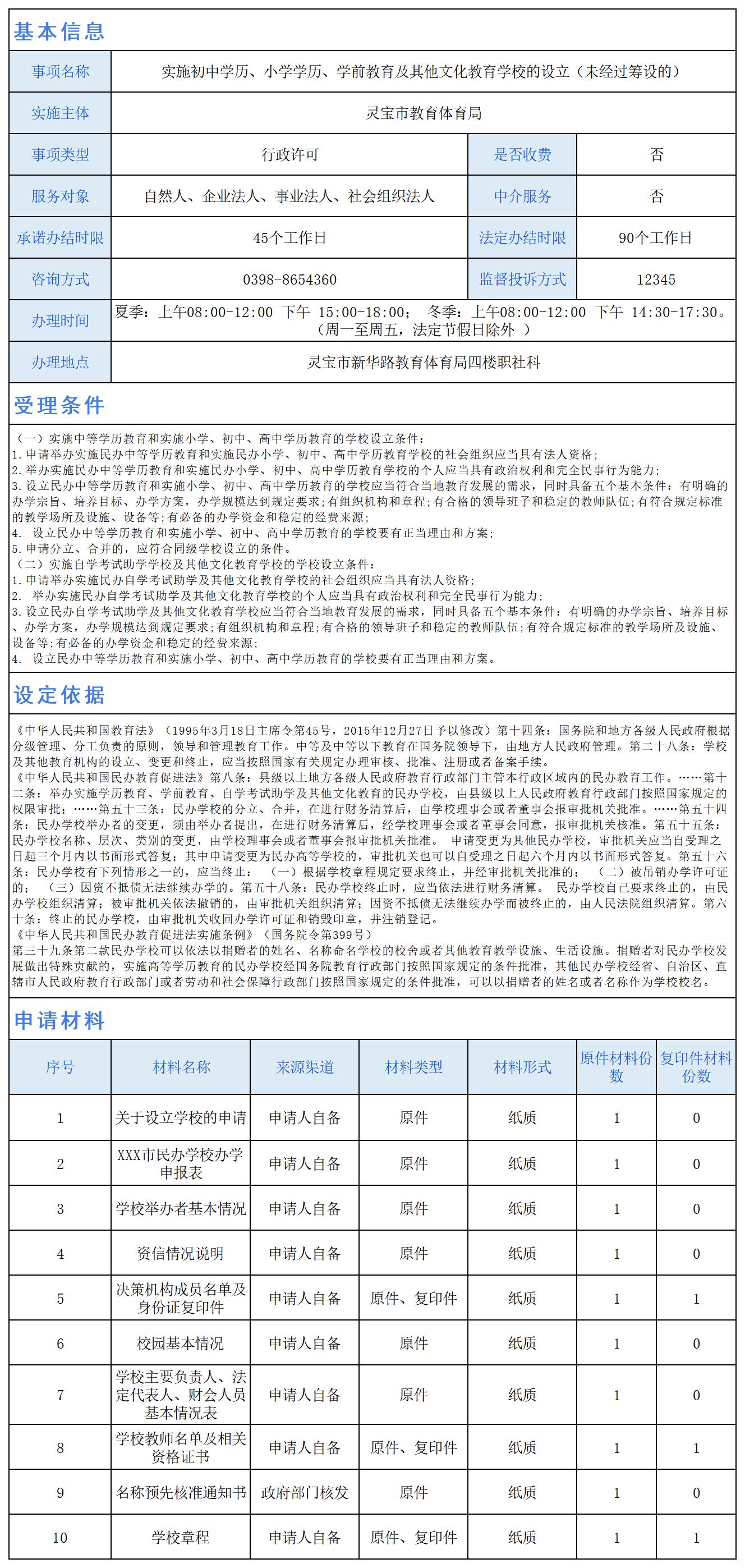 实施初中学历、小学学历、学前教育及其他文化教育学校的设立(未经过筹设的)