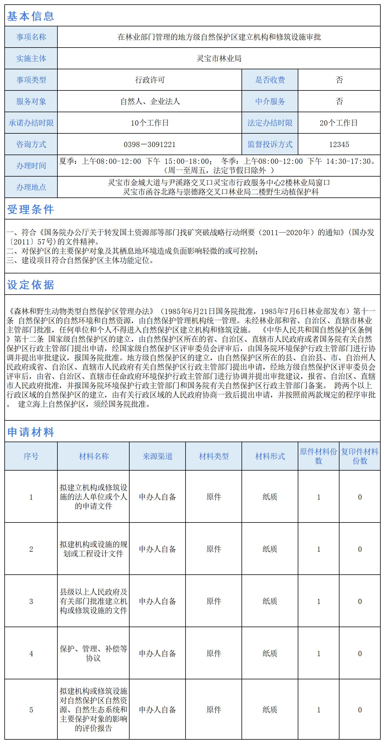 在林业部门管理的地方级自然保护区建立机构和修筑设施审批