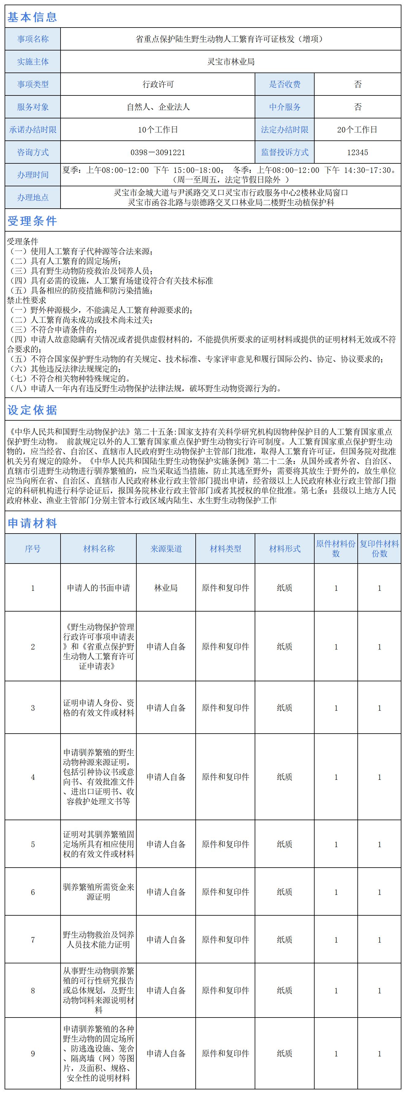 省重点保护陆生野生动物人工繁育许可证核发(增项)