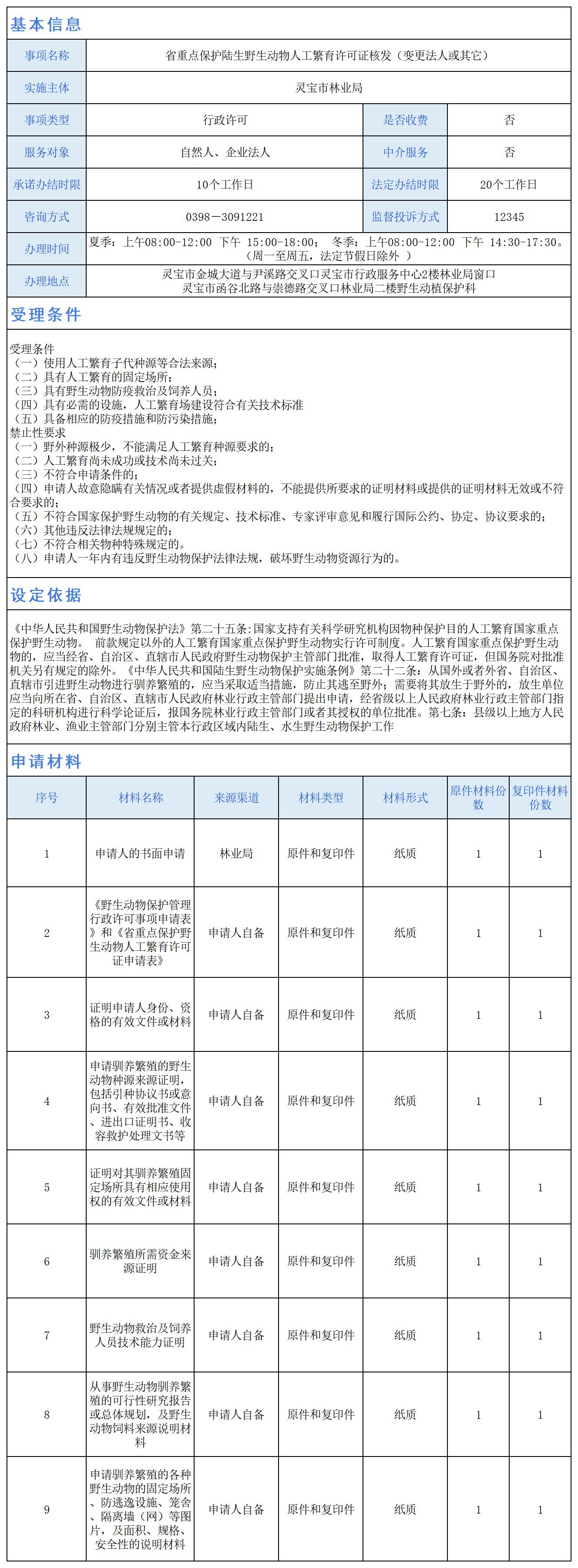 省重点保护陆生野生动物人繁育许可证核发(变更法人或其他)