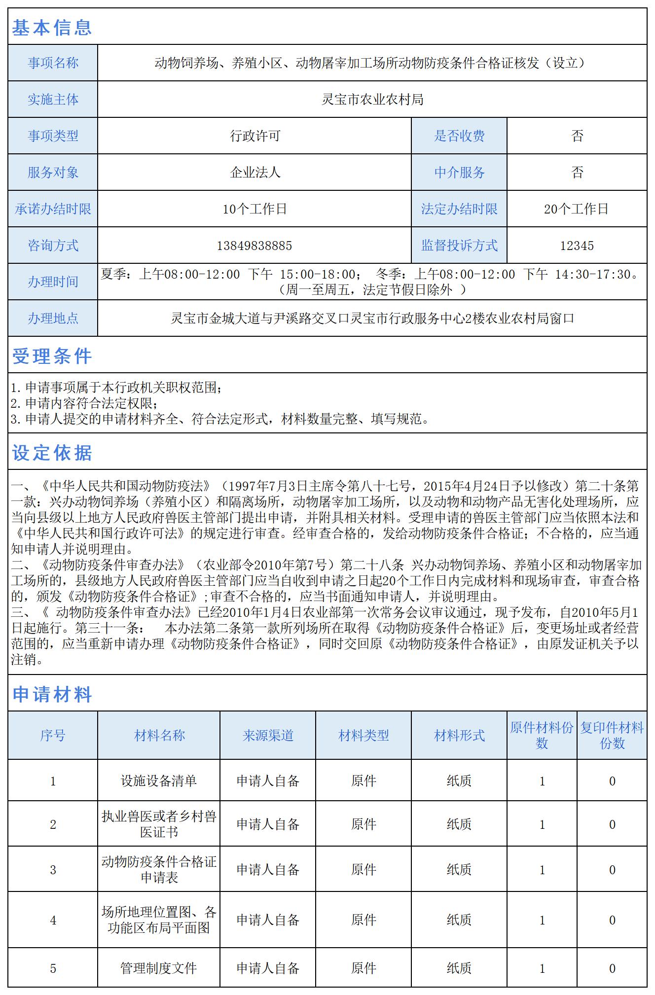 动物饲养场、养殖小区、动物屠宰加工场所动物防疫条件合格证核发(设立)