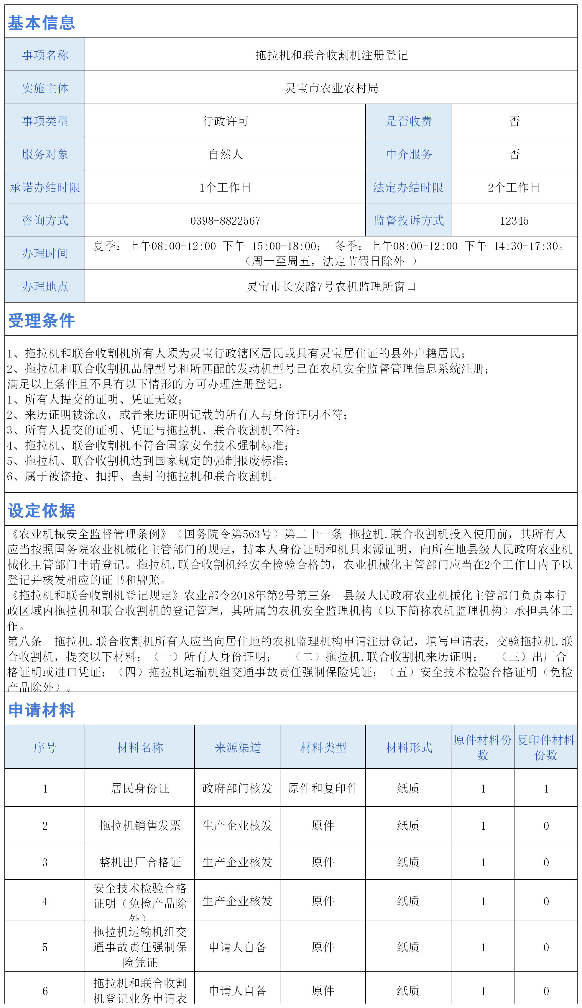 拖拉机和联合收割机注册登记