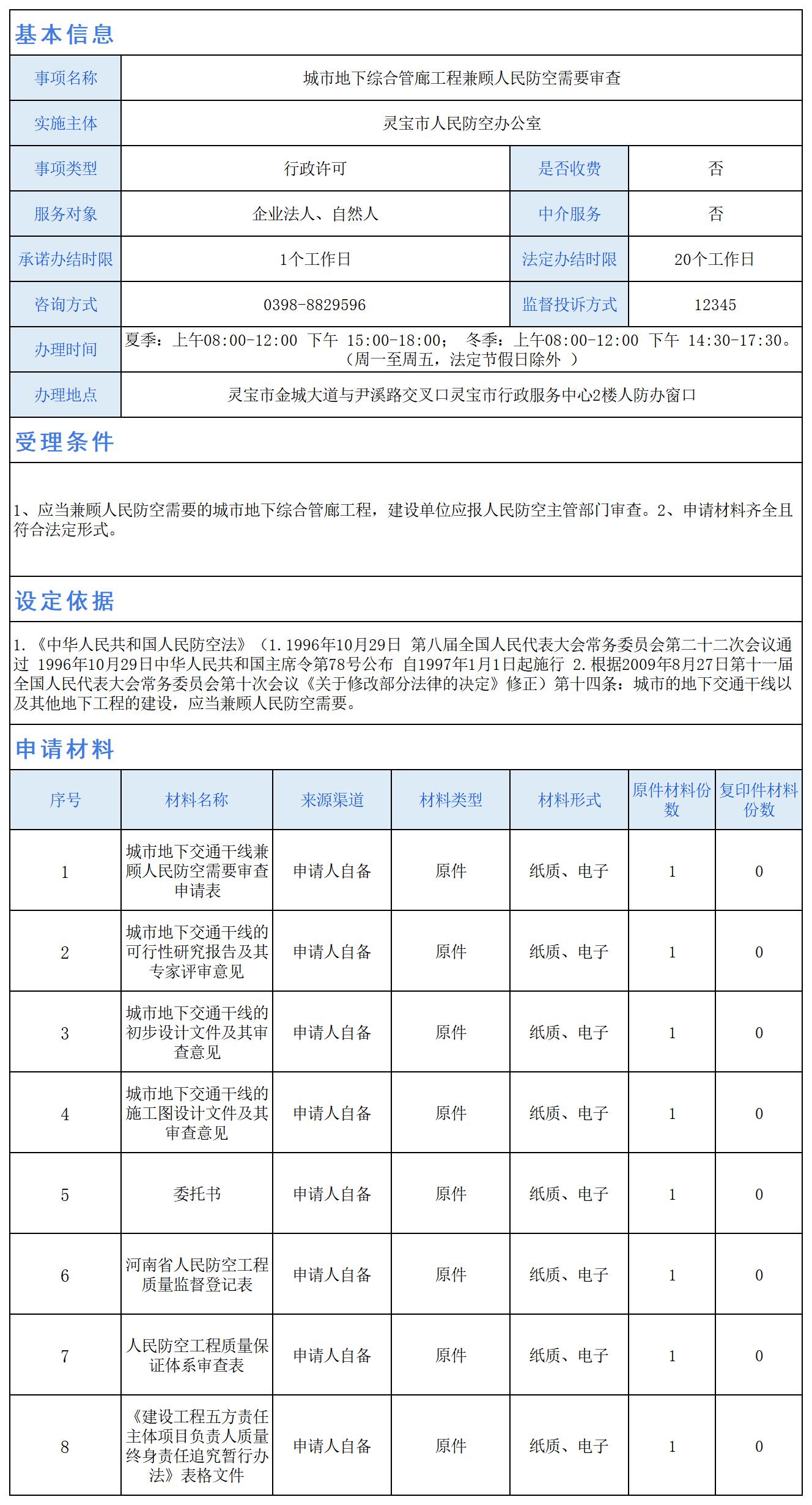 城市地下综合管廊工程兼顾人民防空需要审查