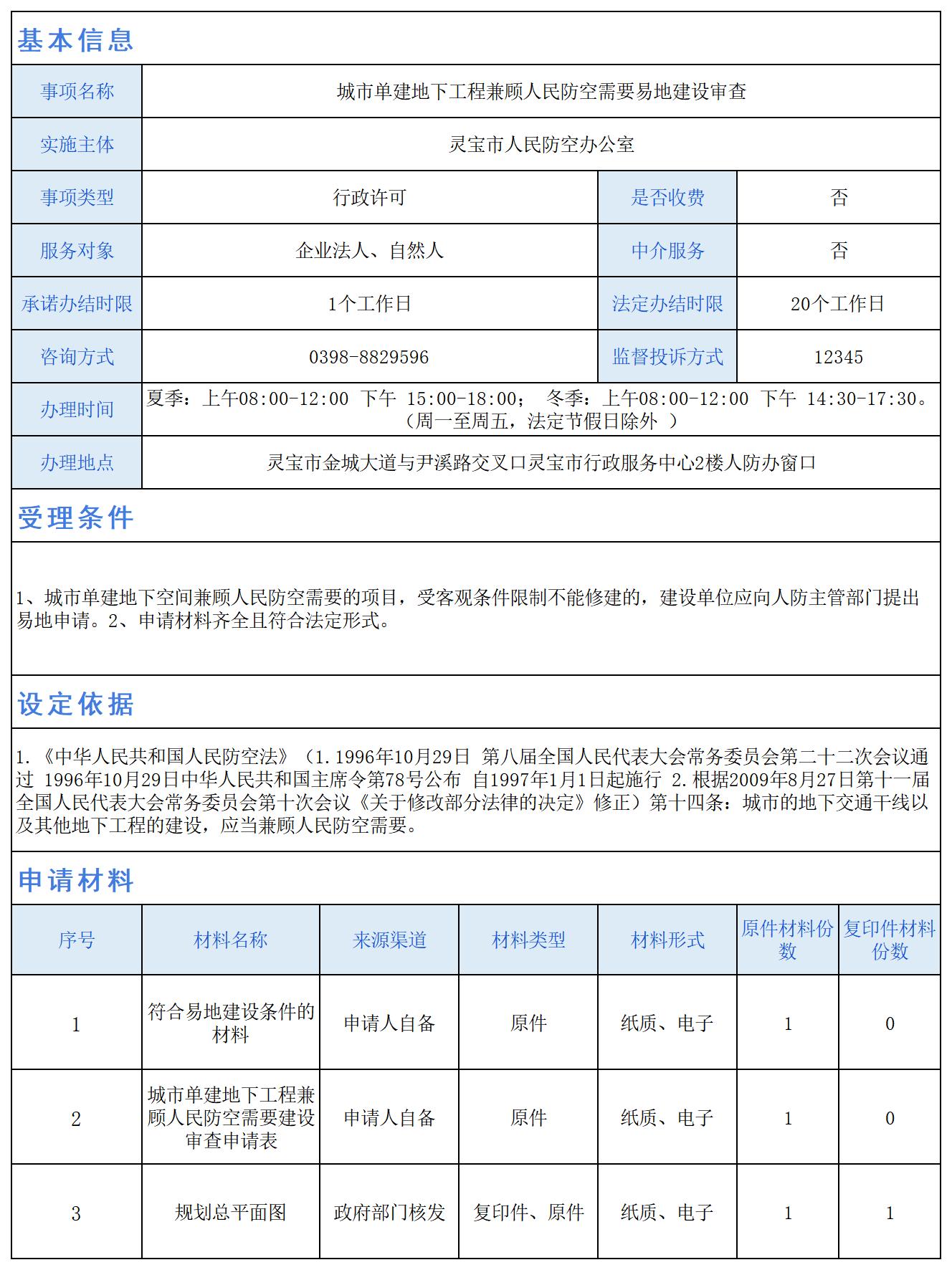 城市单建地下工程兼顾人民防空需要易地建设审查