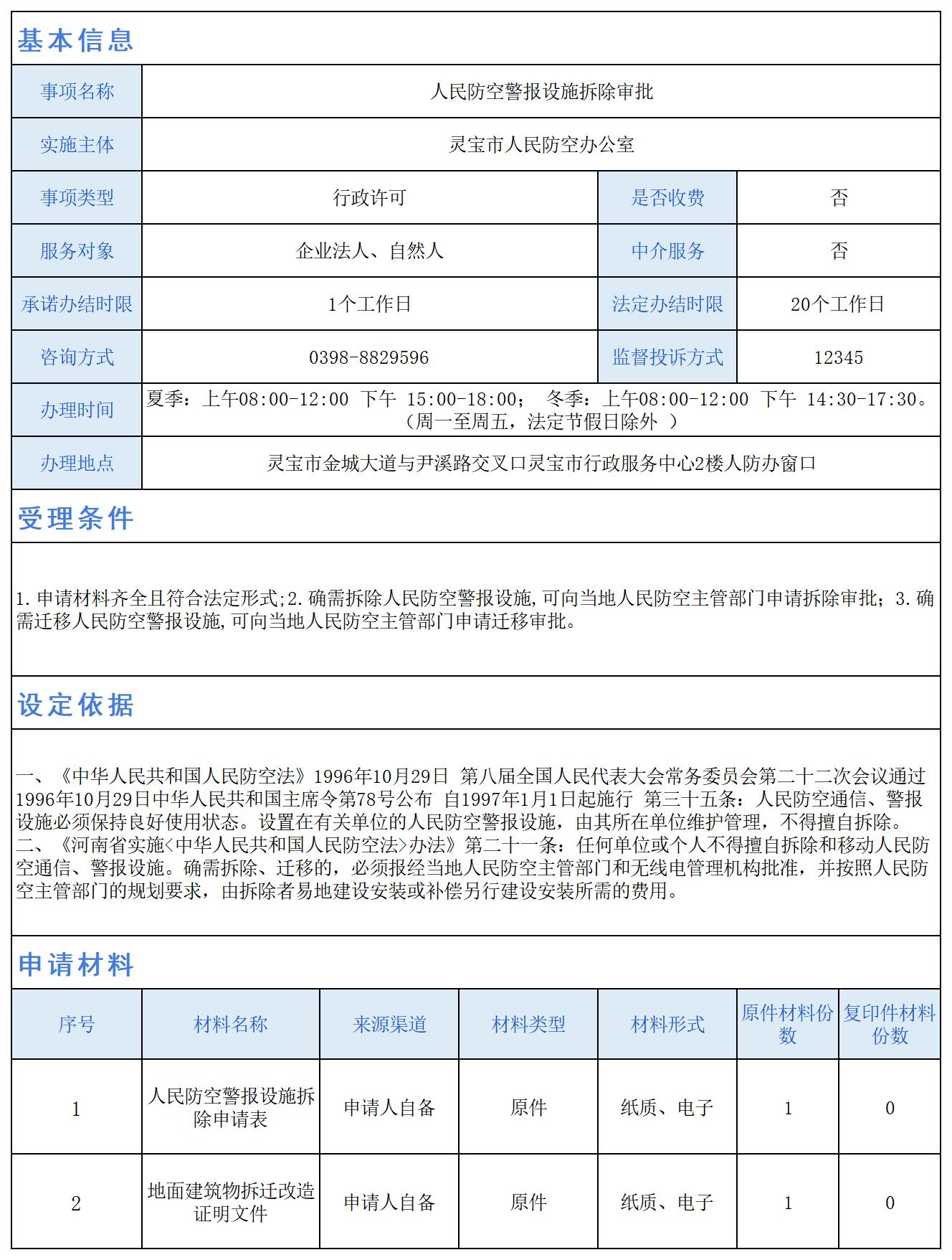 人民防空警报设施拆除审批