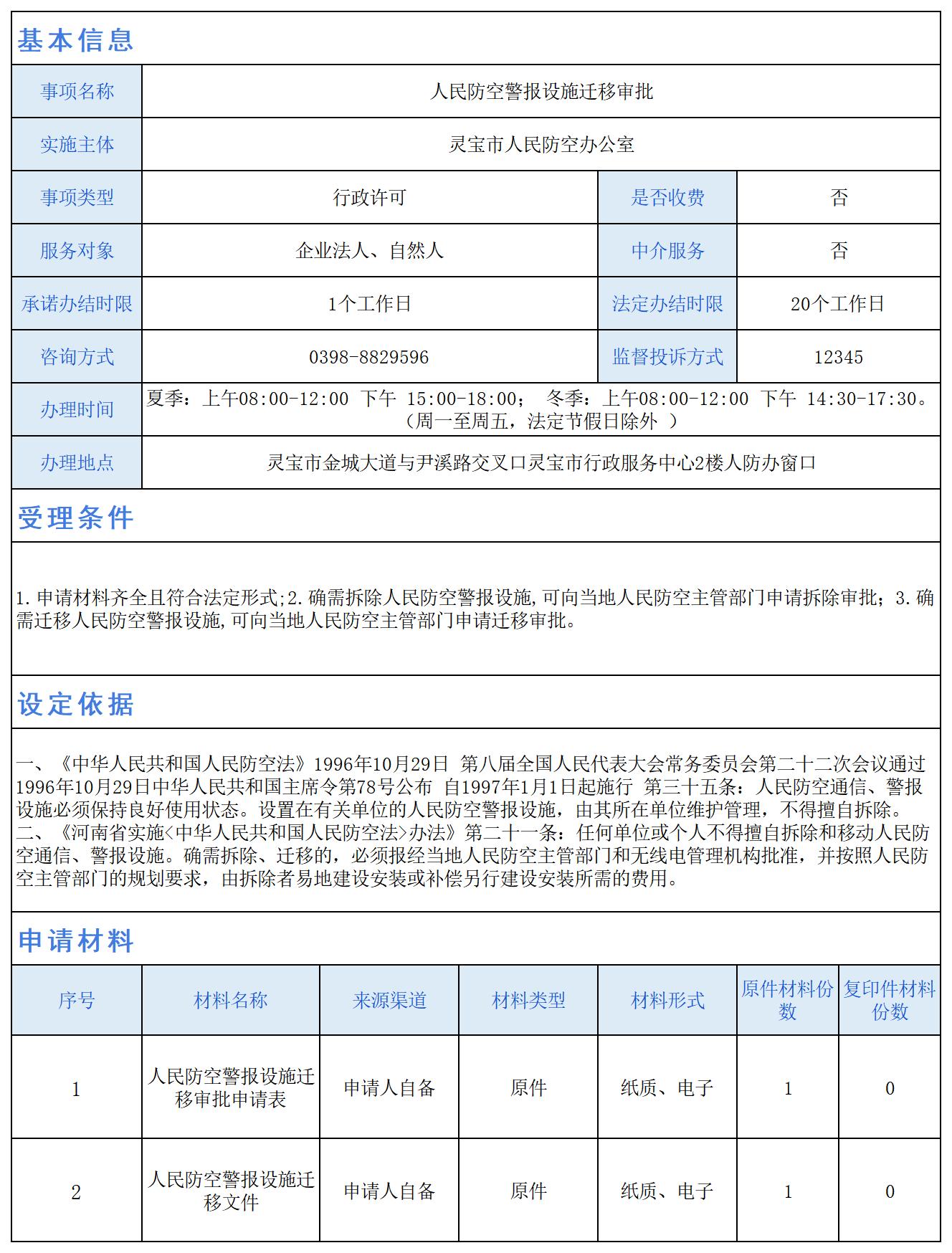 人民防空警报设施迁移审批