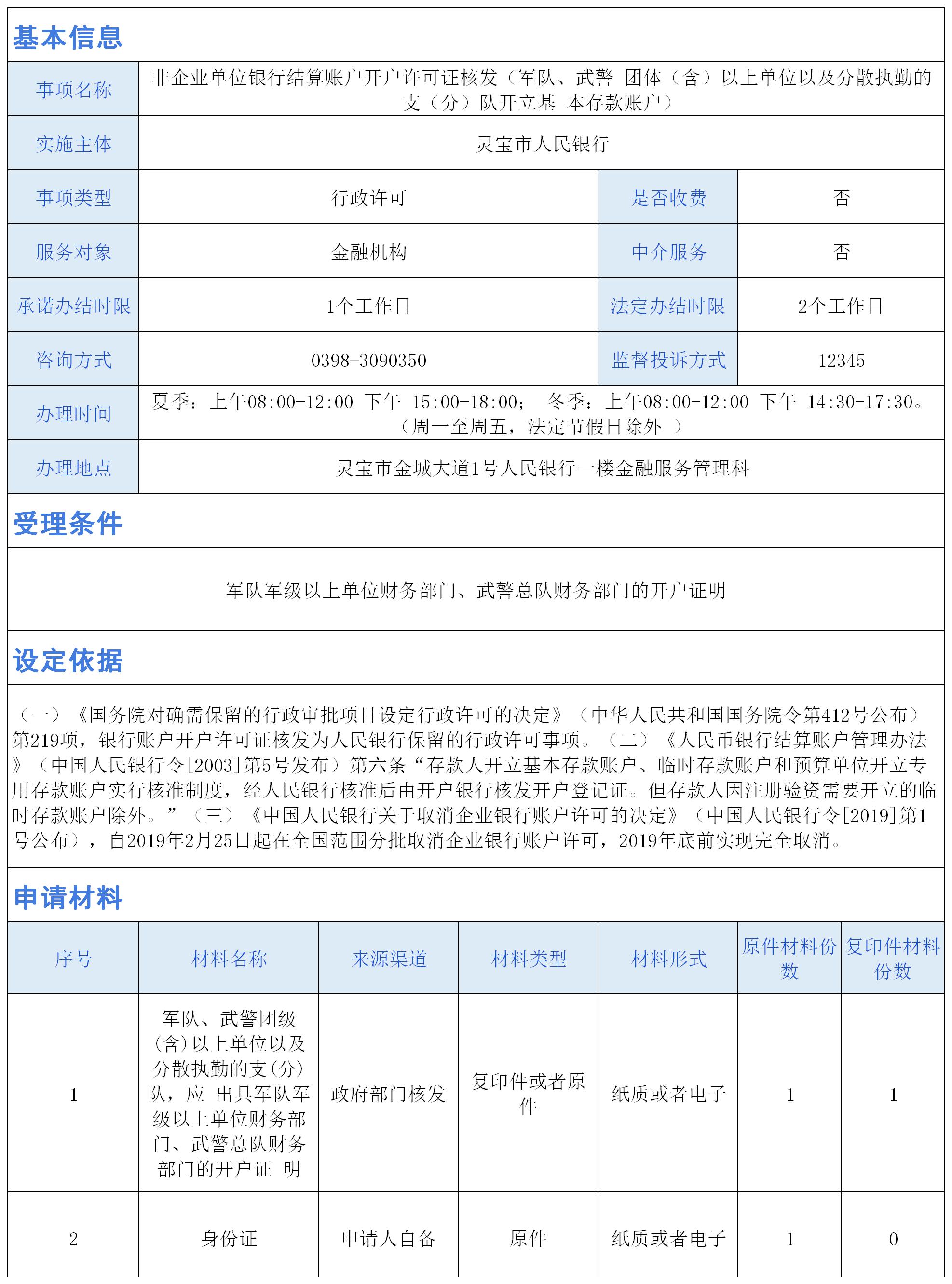 非企业单位银行结算账户开户许可证核发(军队、武警 团体(含)以上单位以及分散执勤的支(分)队开立基 本存款账户)