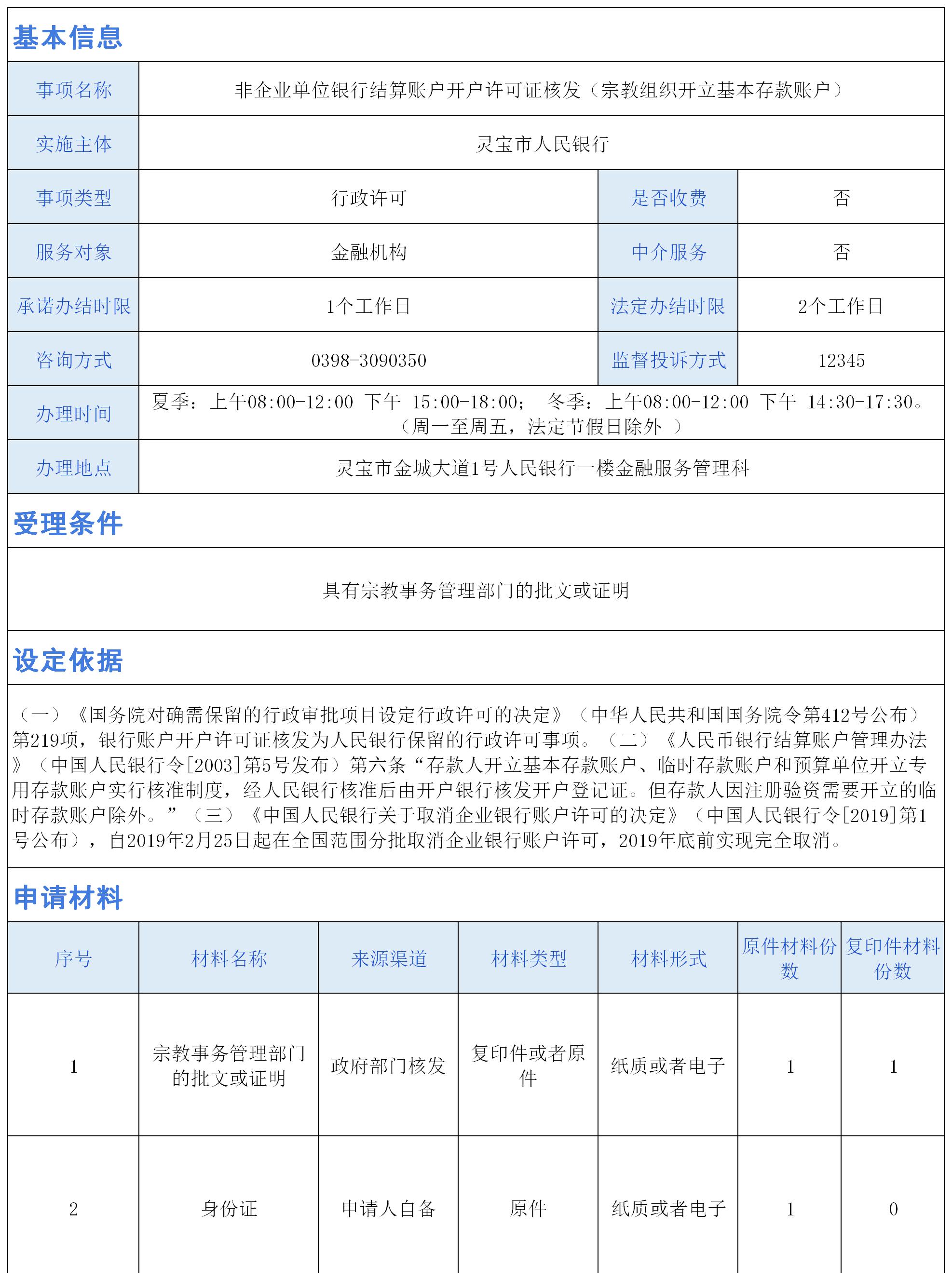 非企业单位银行结算账户开户许可证核发(宗教组织开立基本存款账户)