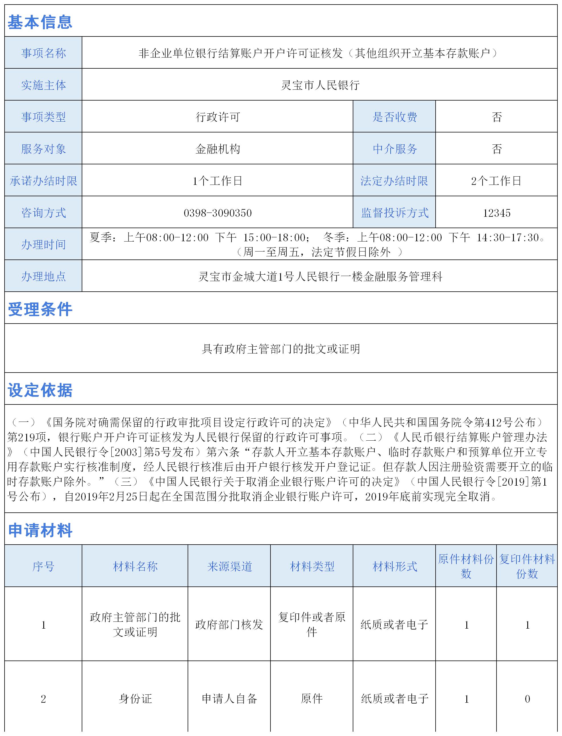非企业单位银行结算账户开户许可证核发(其他组织开立基本存款账户)