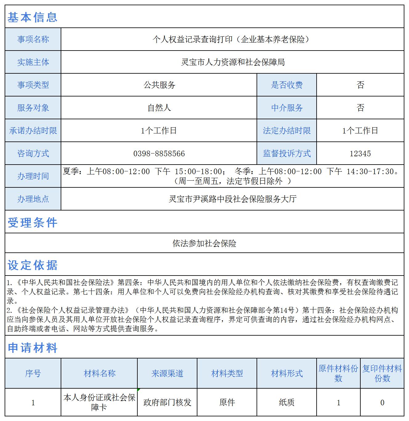 个人权益记录查询打印(企业基本养老保险)