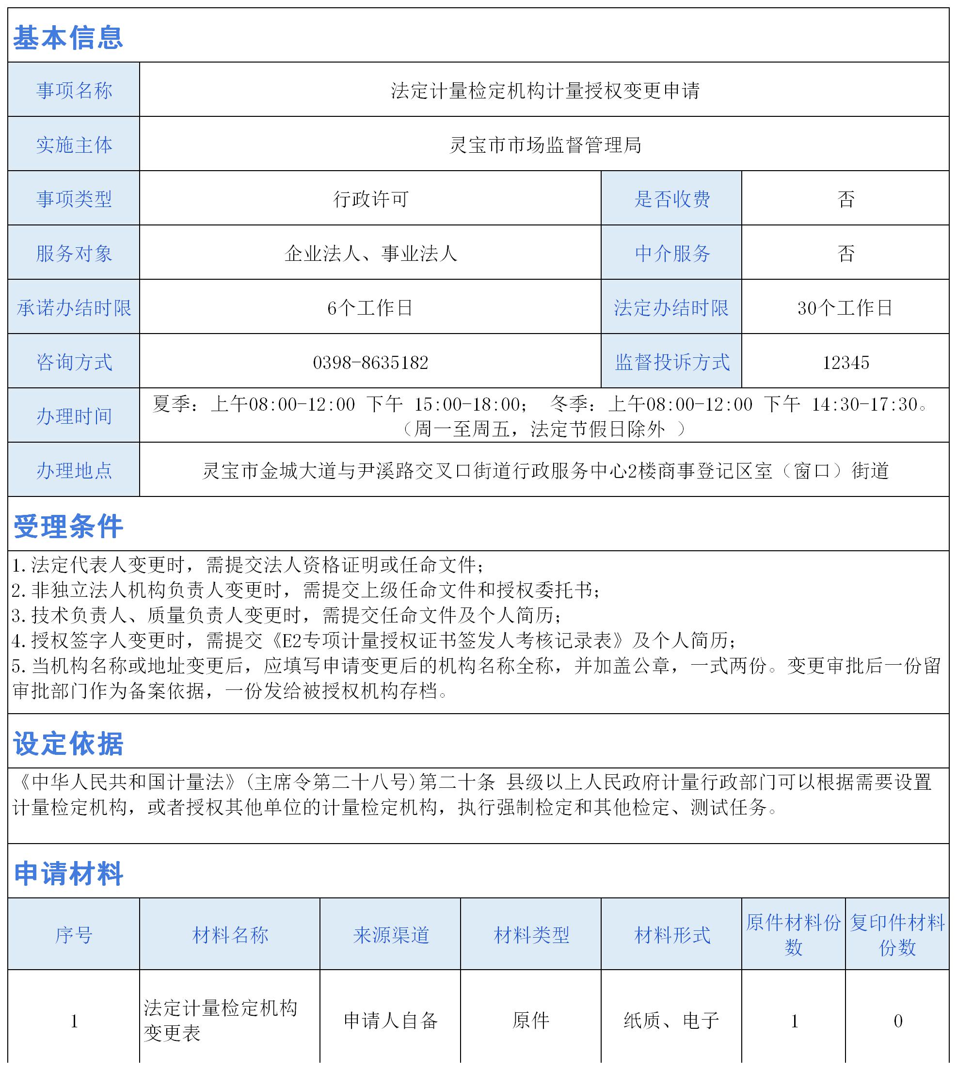 法定计量检定机构计量授权变更申请