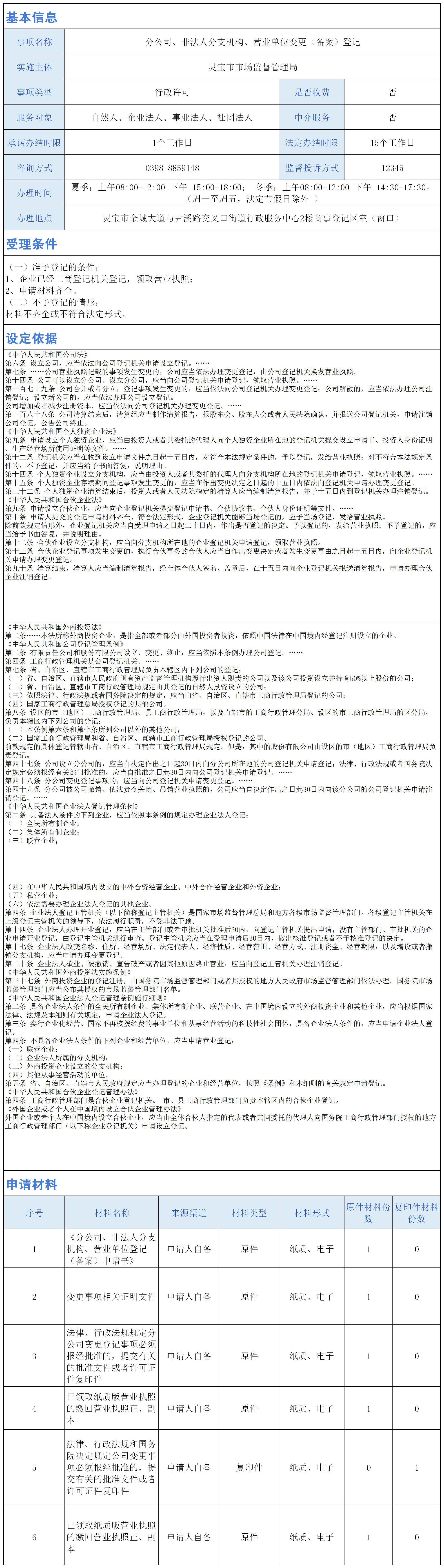分公司、非法人分支机构、营业单位变更(备案)登记