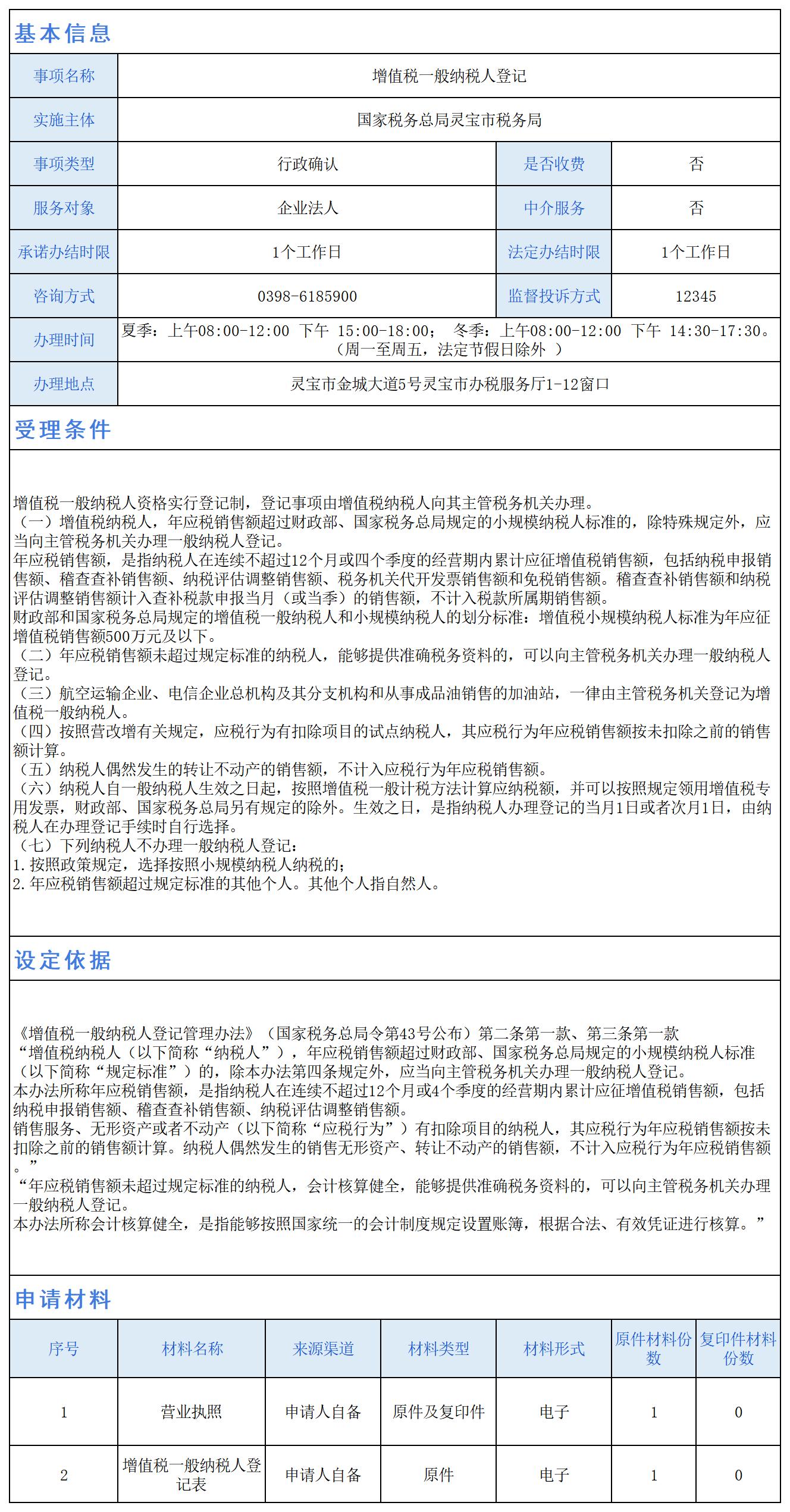 增值税一般纳税人登记