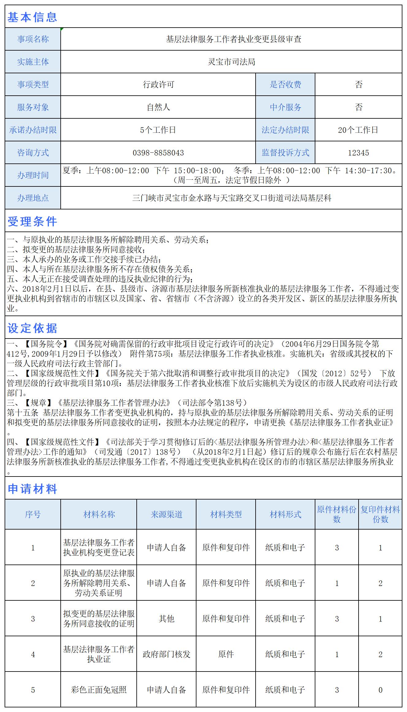 基层法律服务工作者执业变更县级审查