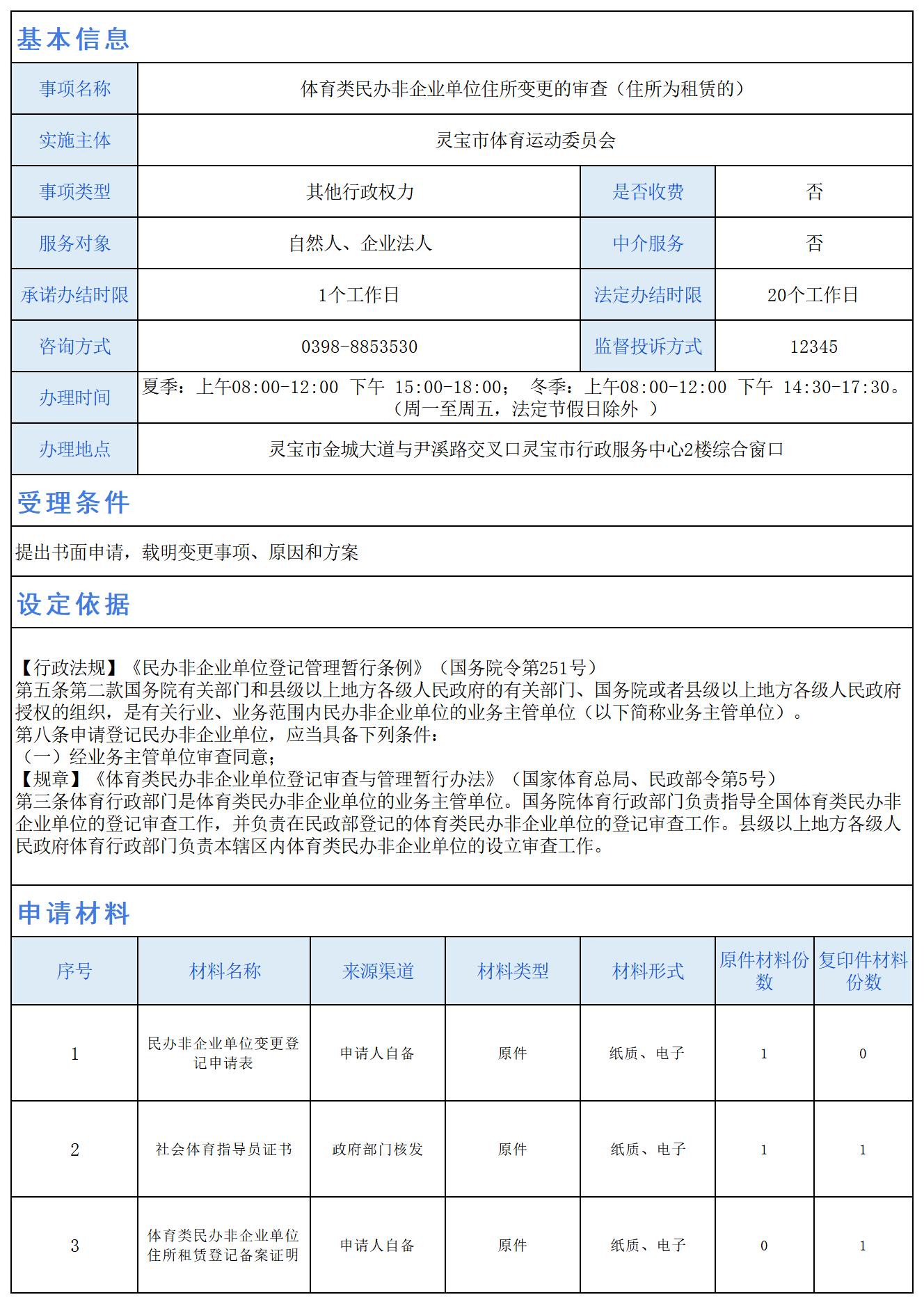 体育类民办非企业单位住所变更的审查(住所为租赁的)