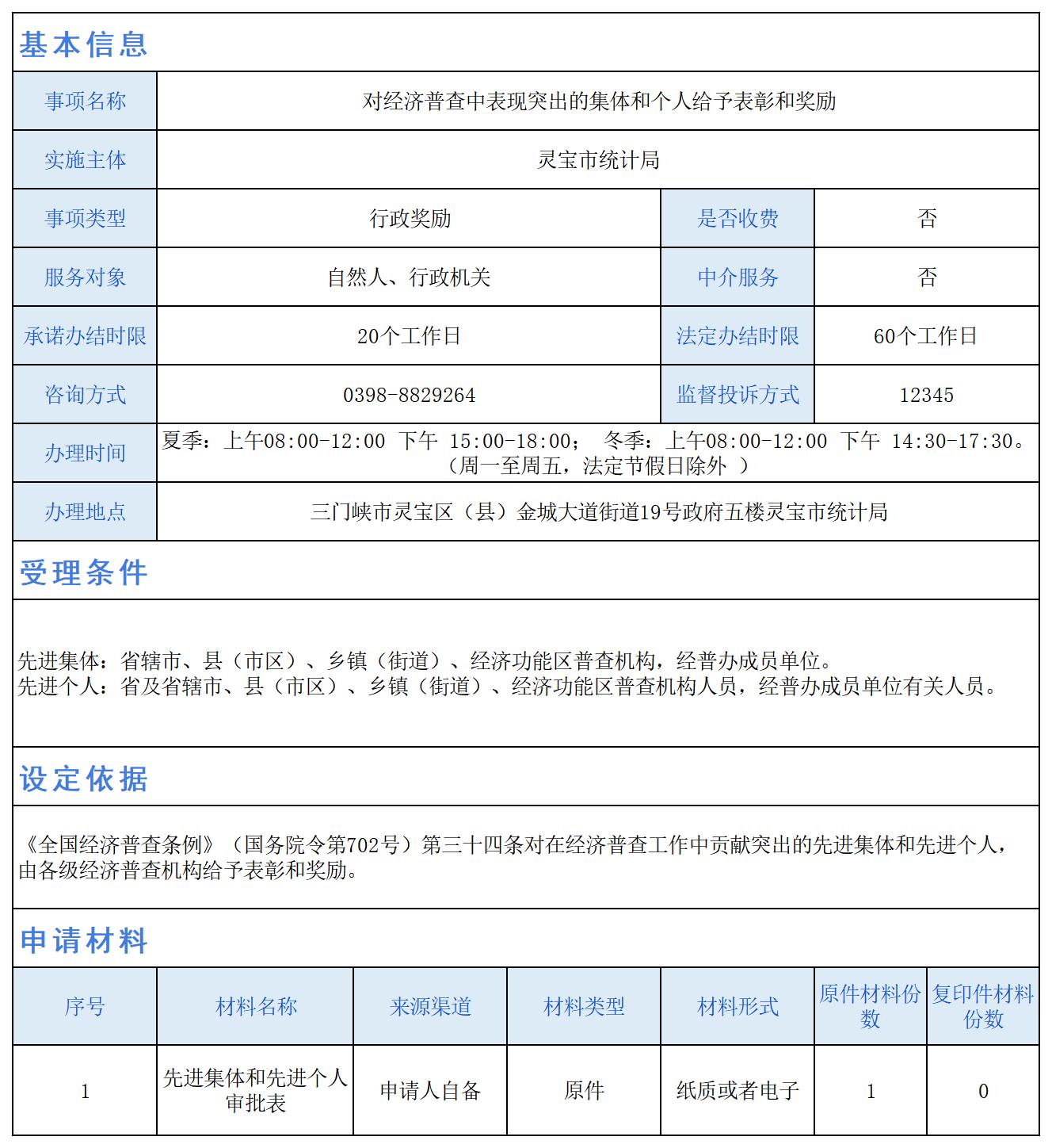 对经济普查中表现突出的集体和个人给予表彰和奖励