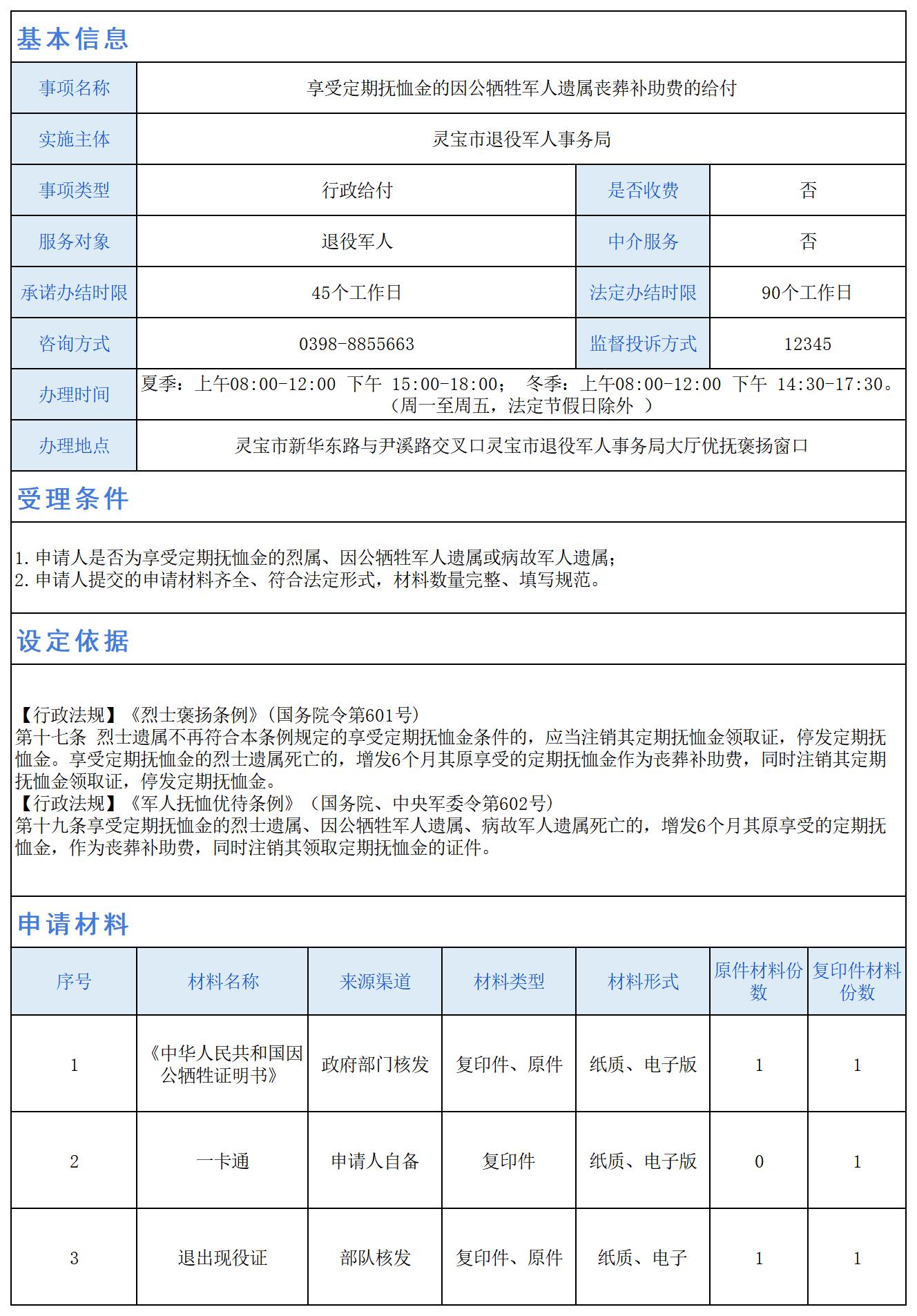 享受定期抚恤金的因公牺牲军人遗属丧葬补助费的给付