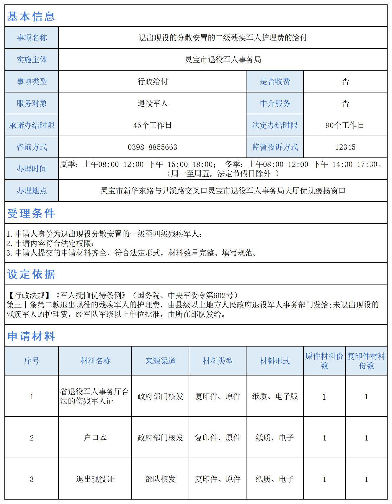 退出现役的分散安置的二级残疾军人护理费的给付
