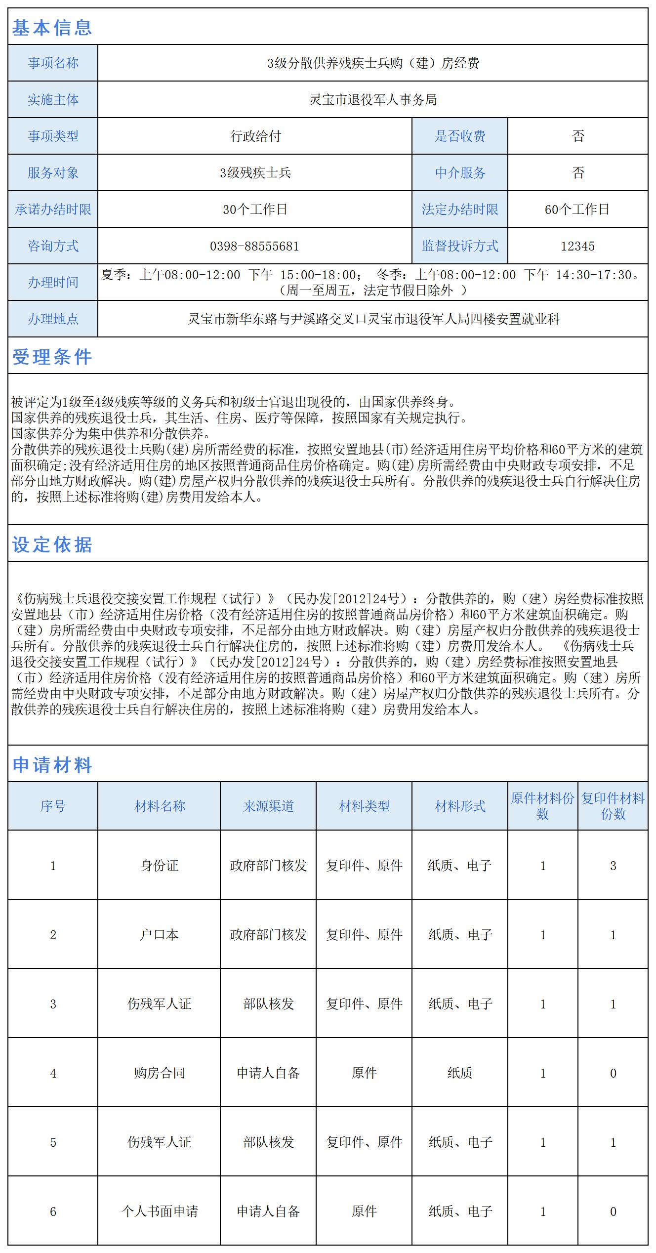 3级分散供养残疾士兵购(建)房经费