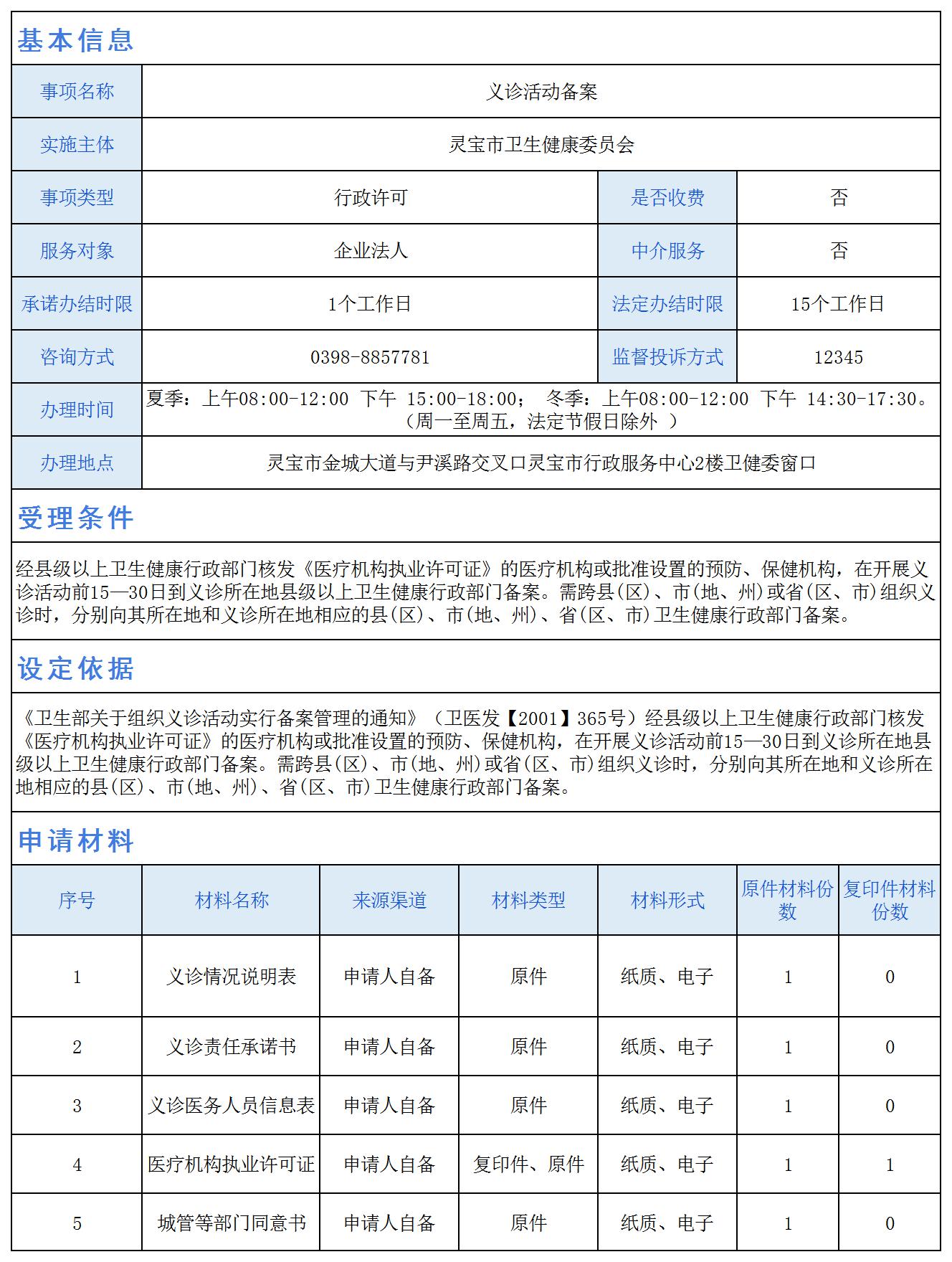 义诊活动备案