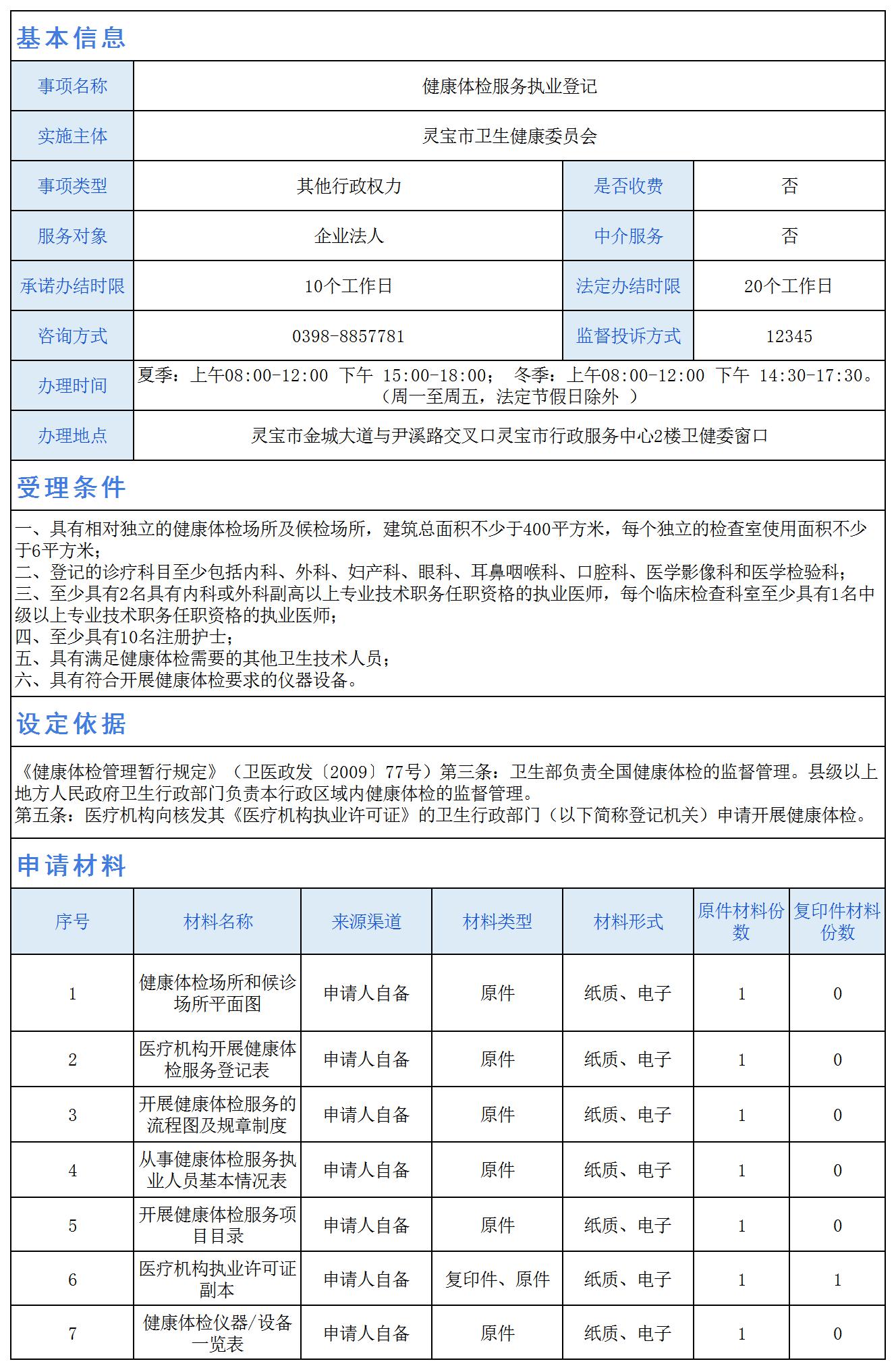 健康体检服务执业登记