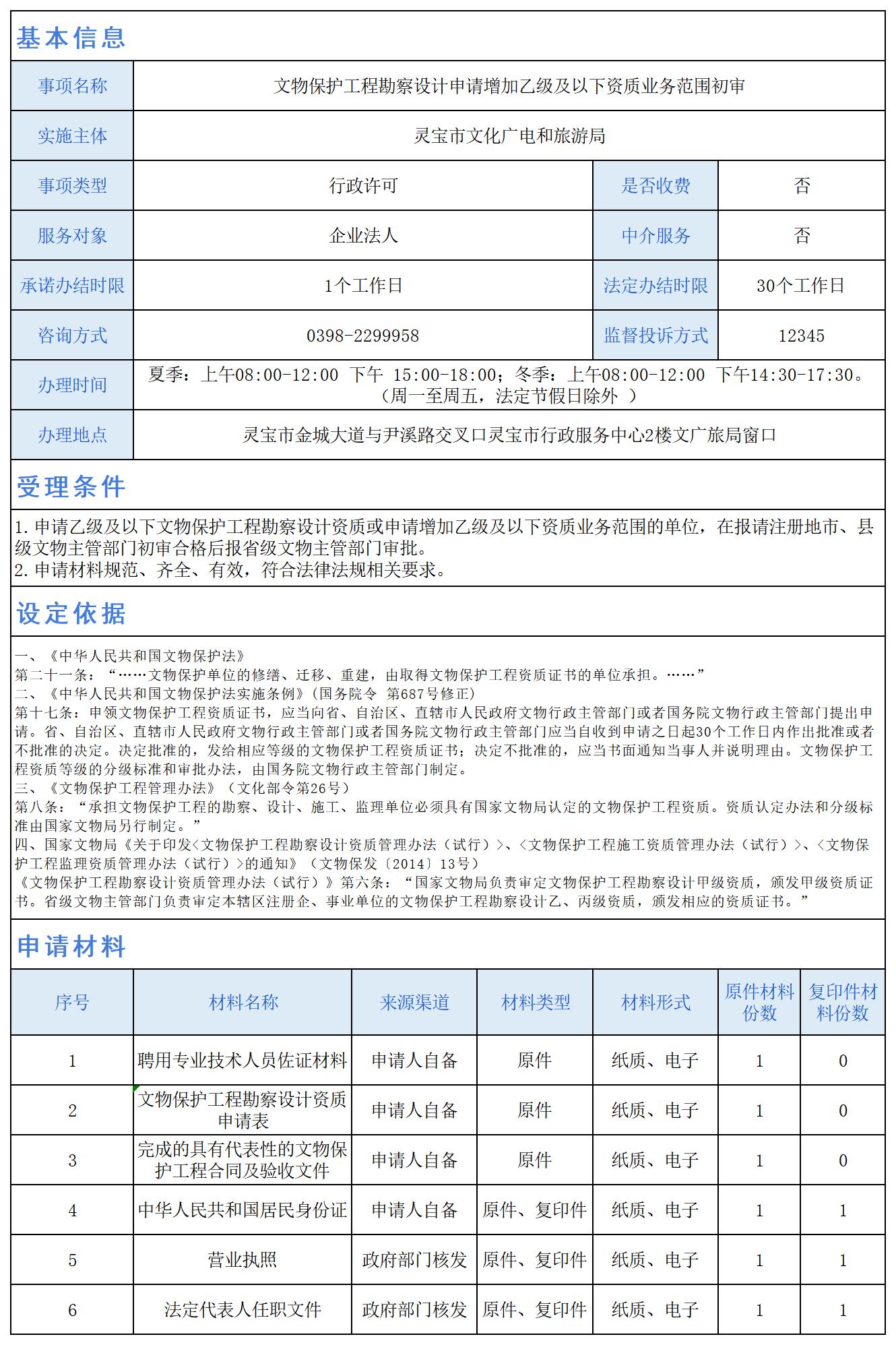 文物保护工程勘察设计申请增加乙级及以下资质业务范围初审