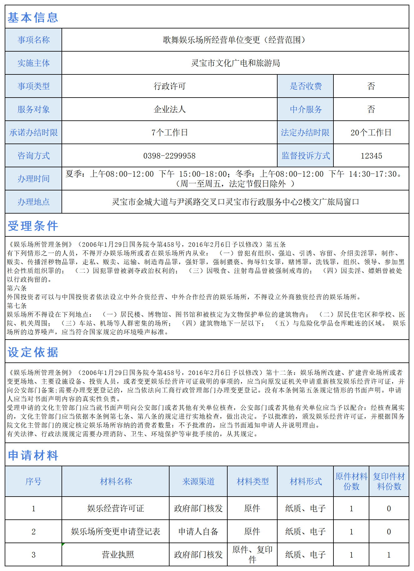 歌舞娱乐场所经营单位变更(经营范围)